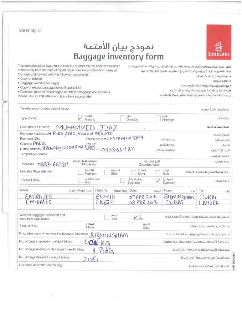 My name is M.Ijaz i also Travlling on emirates and lost my baggage and also received after 6 days and the things in the bag mostly damage. i flew united kingdom to Dubai and Dubai toPpakistan i have many problems. my flight number EK040 on 7apr2016 i have alot loss of time and things some personal things have lost and the lock of the bags also open without my permision. in Pakistan i stay in Faisalabad and my flight land in Lahore therefore i still travel Faisalabad to Lahore to received my bag but bag cannot received.after the 6 days i received my bag but very bad condition. my purse in the bag and some my bank card and bus pass and other important things but i have no receive any card and bus pass etc. therefore a lot loss of time and money in the use Faisalabad to Lahore. i hope Emirates do some on the case and i hope contact me soon. My E.mail id is Asadullah5511