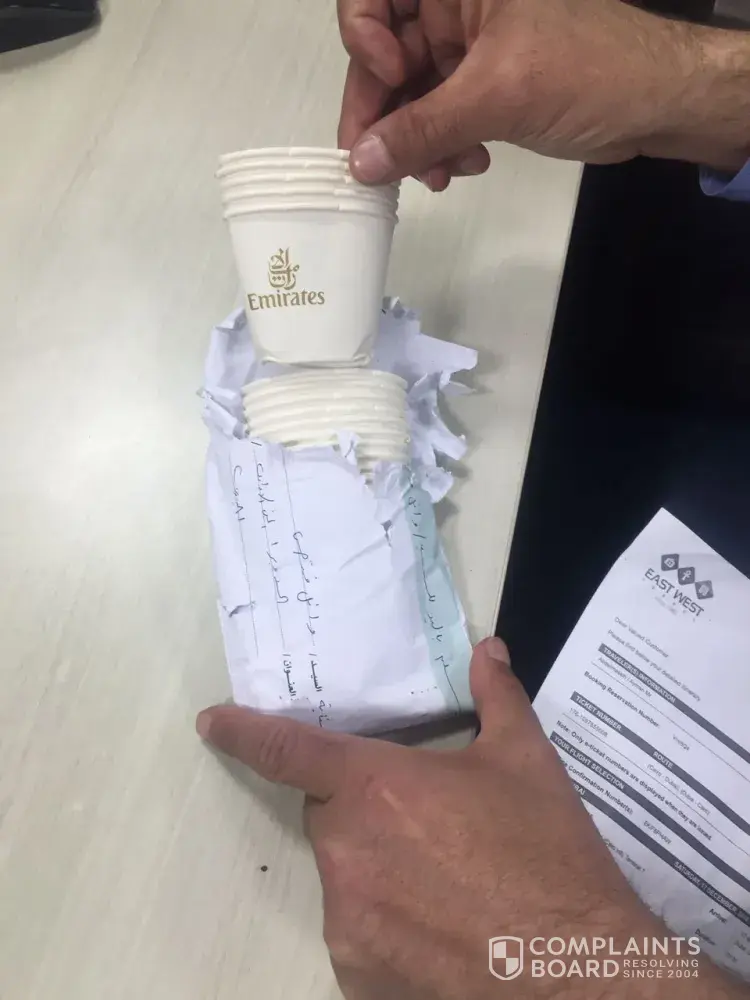 I need to clarify what is the solution where you may have lost confidence in the empty envelope of money and And found them Cardboard cup stamped Emirates Airline how it happens on the lines Emirates Airline