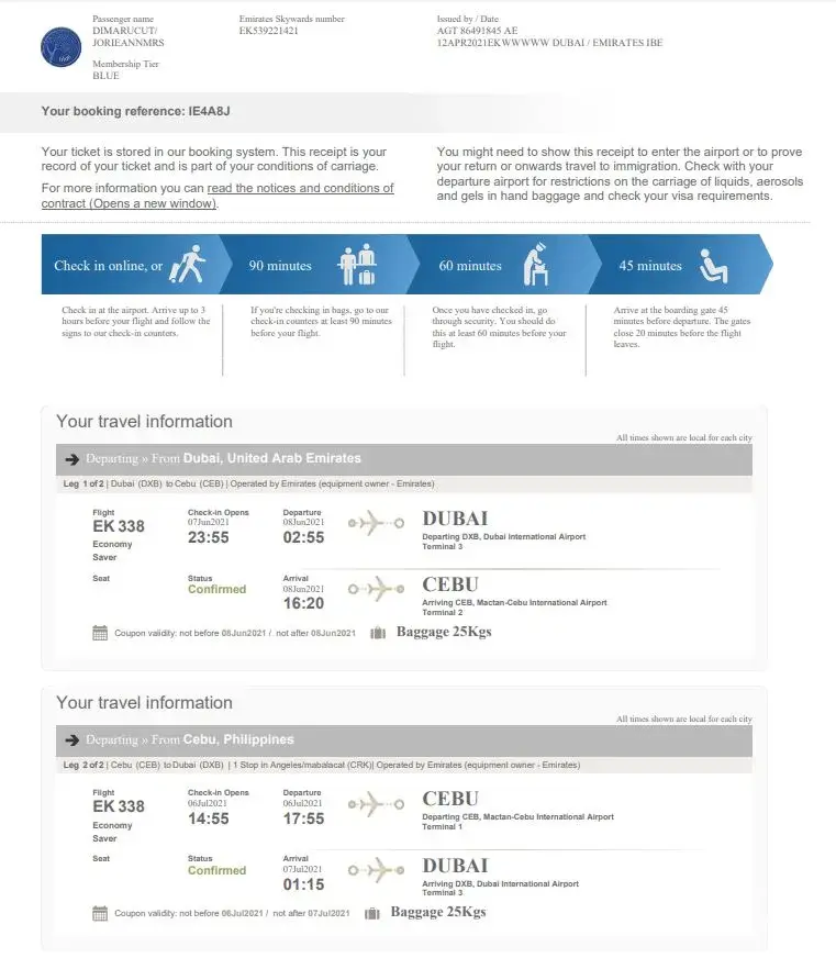 After reaching Spain we called their customer service who asked us to file an online complaint with Emirates which we did but they sided with the agents by sending a templated initial response and just did not answer our questions or any futher emails.