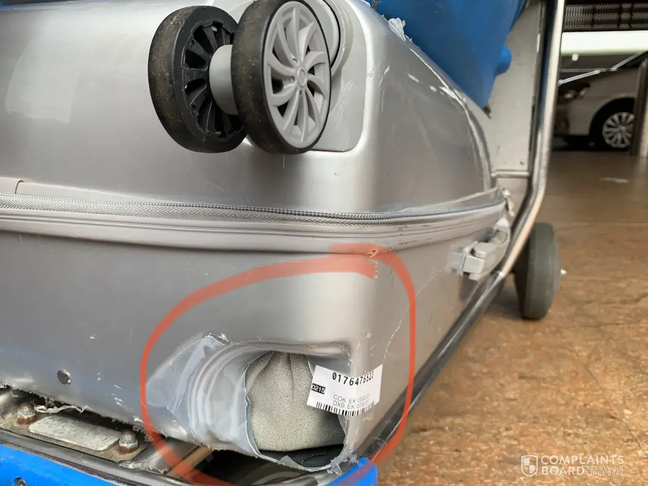 I left Uganda on 31/Oct/2021 on EK 730 with two suitcase that were in perfect condition. When I got to Cochin on 01/Nov/2021 on EK 530, one of my suitcases had a broken wheel (please find attached pictures). I'm kindly requesting to be compensated for the damages as I won't be able to use my suitcase for other flights.