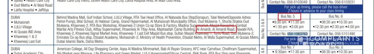 But When i was having a first test of eye in Al quasis branch , they told me you should go by your self and i went , then when it was my first theory test i went there by taxi and pay my own bills , Now i am during a training sessions from 4 classes and i am paying everything by my self . i am also doing job and my daily earnings are 100 AED daily and i am living in Wadi Al amardi , Infront of Dubai safari park , D-54 highway . during all these classes it takes me 50 AED to go to the institute and then at the time of return it takes around 65 AED to reach my destination by careem , so i am even loosing amount which is extra , Then i have checked your bus routes , it has been clearly written that Wadi Al amardi , And Al amardi road has routes with Bus no.5 , Then i call that bus driver his number [protected] ) . He talked very rudely to me and said i don't know your location please don't call here again ask someone else and when i m talking to my agent he is also not replying and nor picking my calls , i mdoing a 12 hour shift daily with no holidays so i cannot go to his office , i have lost around 400 + AED by giving taxi fares and i think i will loose more amount of money if you didn't help me . Then 2 days earlier i was having a class there and i went to the Bus drivers supervisor , he talked very rudely to me and tell me there is no one to listen your complains , so it's better you came by taxi or go with the buses and then pay a little amount of taxi fare . i was very disapointed at that time that there is no one to help me . My final words are please enlighten this issue and please try toresolve my issue ASAP , I am also not that rich and i am here to supoprt my family i am from pakistan and my age is 24 , i leave my country at early age just to earn some extra money for me to support my parents there . SO if it's keep on going like this i think i will loose more than 1500 AED in less than 2 months . Please it's an humble request to solve my issue and proivde me a buss route which i deserve . i will share the bus route screenshot here to confirm that my location is under BUS number 5