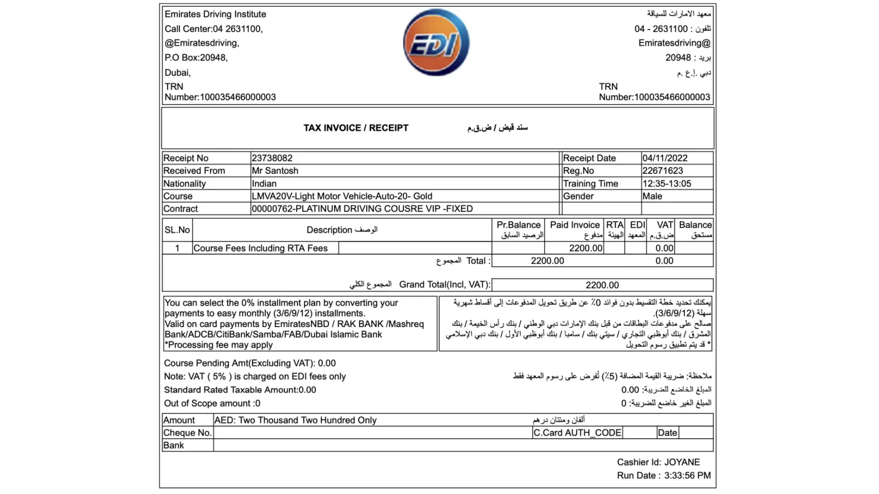Emirates Driving Institute [EDI] has left an official reply on this complaint.