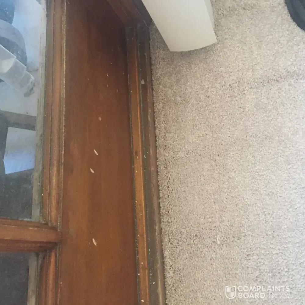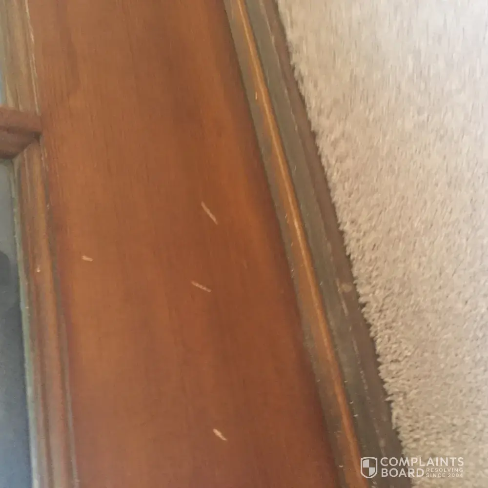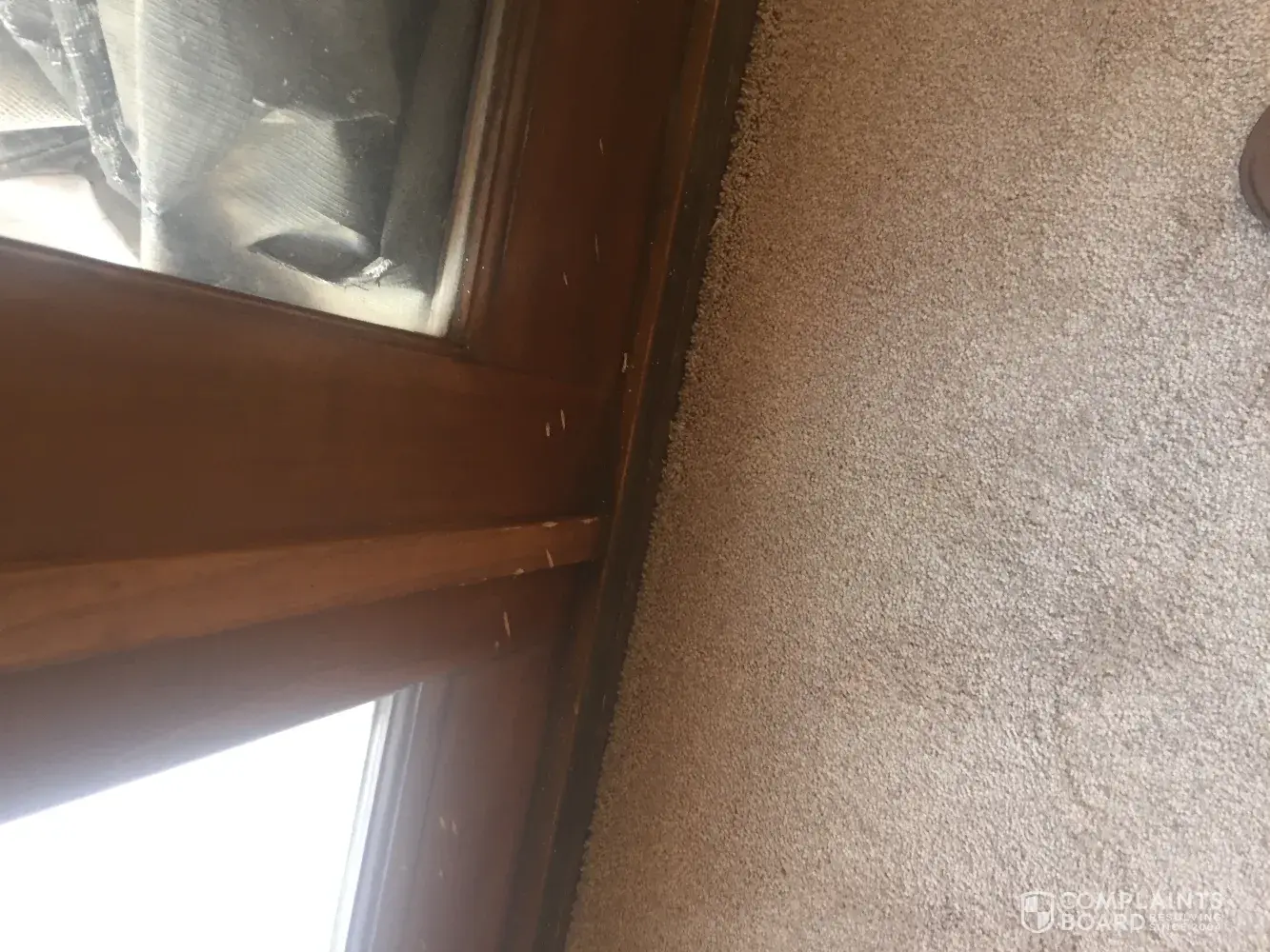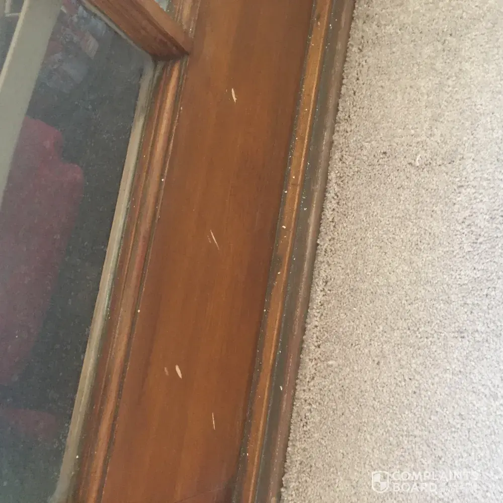 Bought a carpet and was to be installed on wed. And got a call the carpet did not come in and they said they would take $100.00 off. Was installed the next day and did a good job installing it. But when I look at french windows on bottom of window there where hammer marks.? Have pictures and should have been told. No one said anything and didn't notice it till latter have blinds.