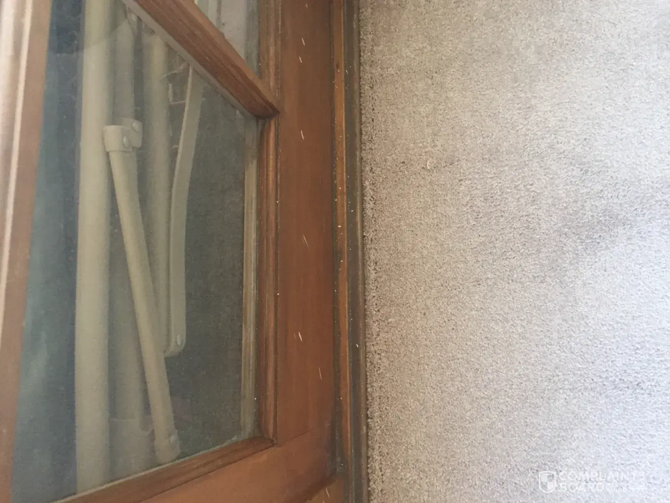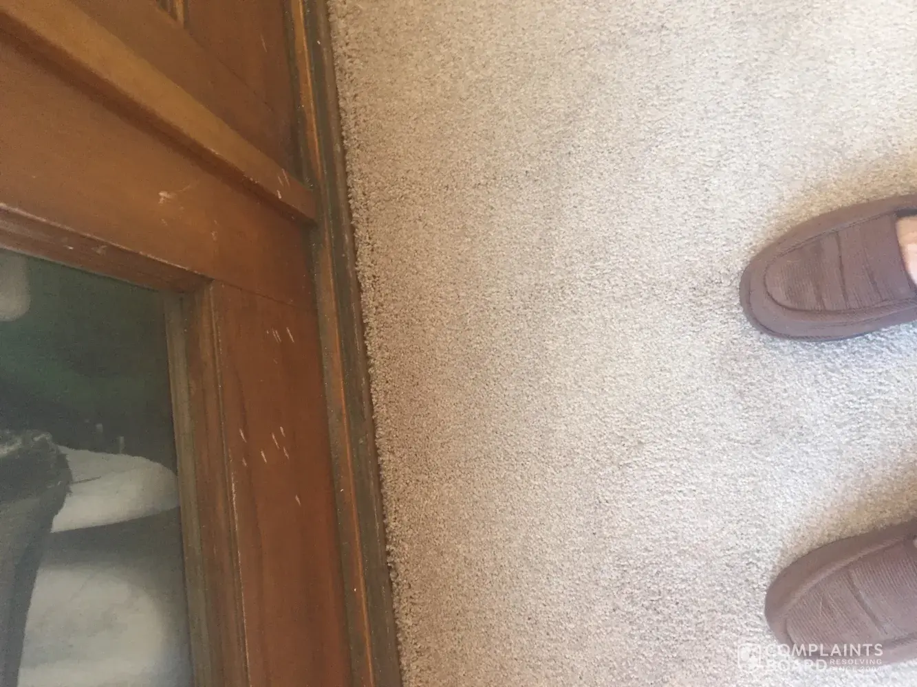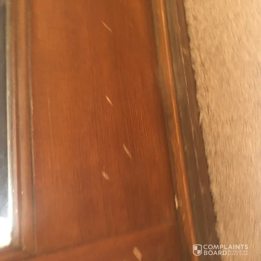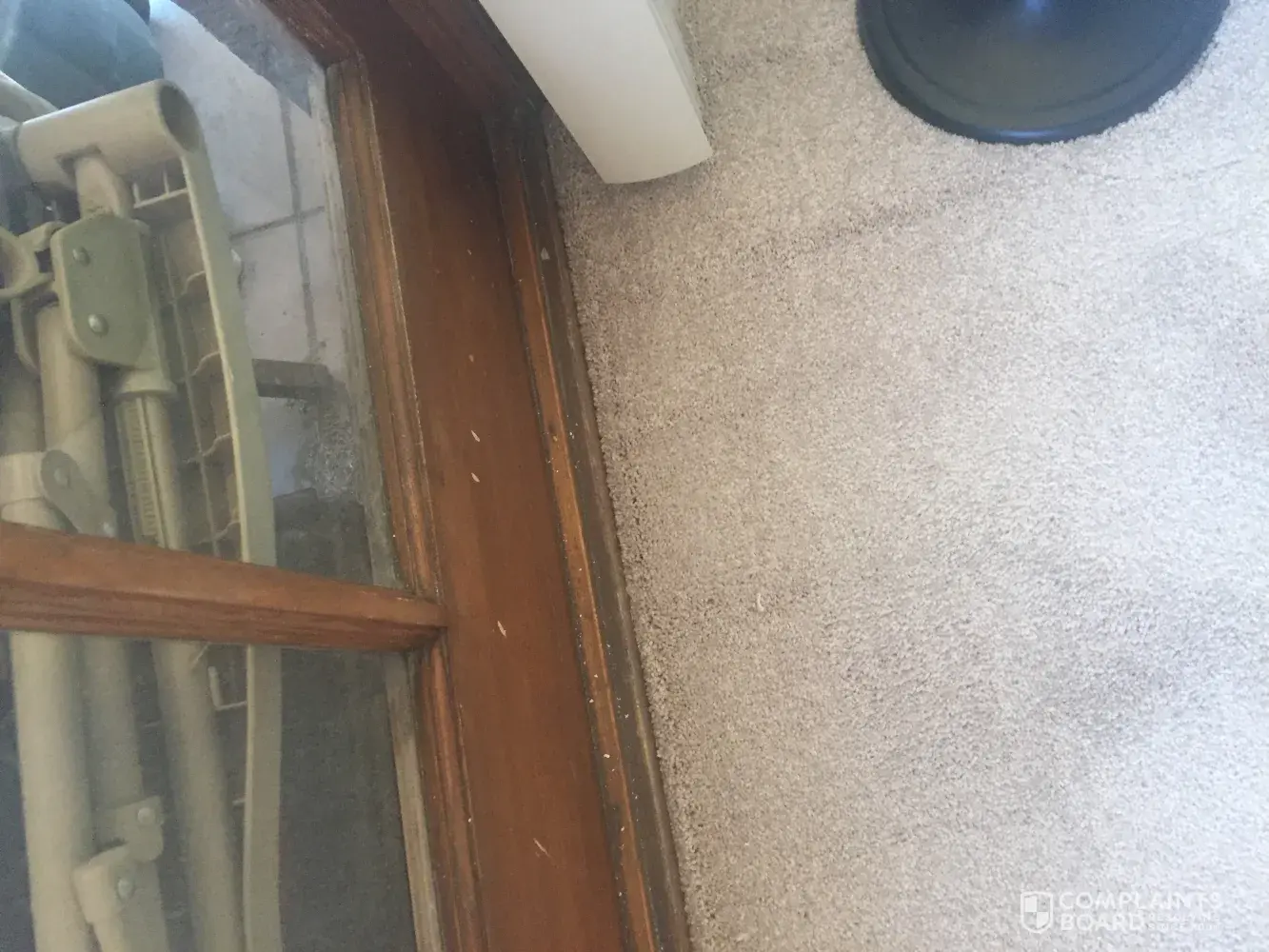 Bought a carpet and was to be installed on wed. And got a call the carpet did not come in and they said they would take $100.00 off. Was installed the next day and did a good job installing it. But when I look at french windows on bottom of window there where hammer marks.? Have pictures and should have been told. No one said anything and didn't notice it till latter have blinds.