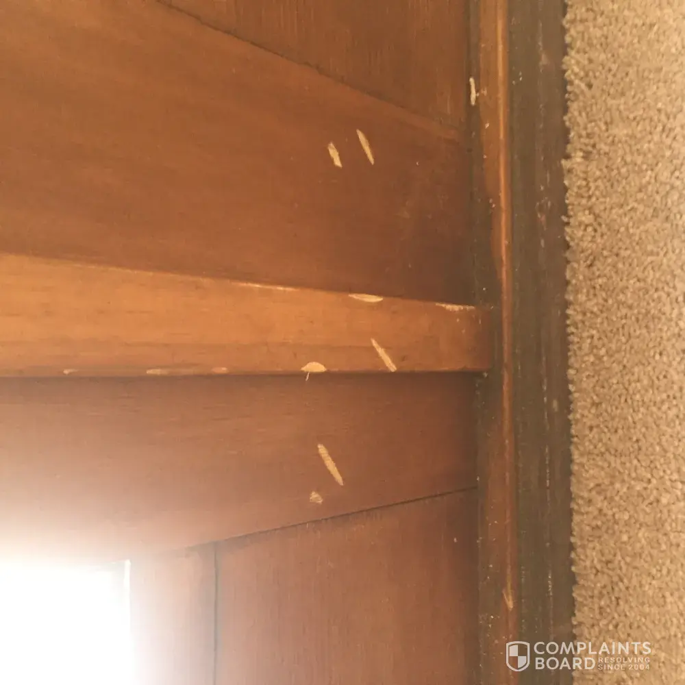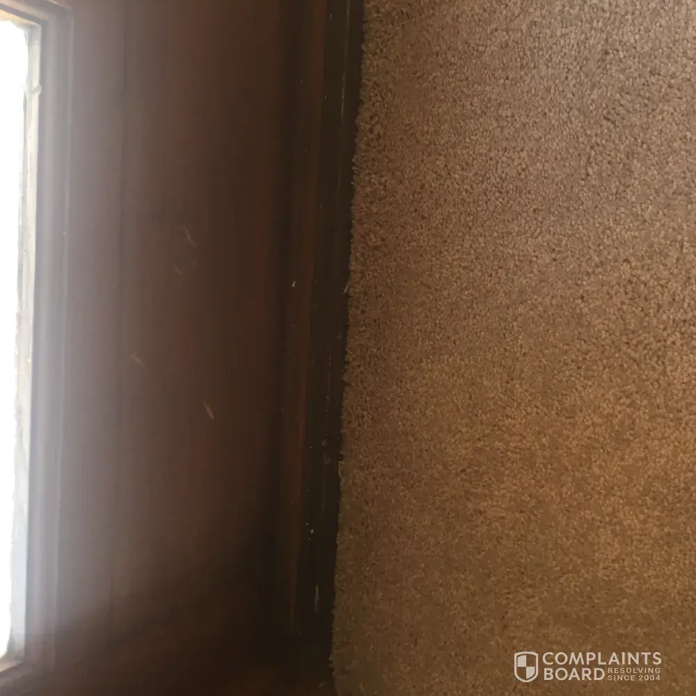 Salesmen came and we bought a carpet and in a color close to what we have. Installer came and installed carpet. When he was finished he told us to look at it. We asked if this was right carpet and said that is what they gave him.Not even close to our carpet we have already. Look at window and noticed marks on bottom of window was marked up . Need to be sanded and re-stain.