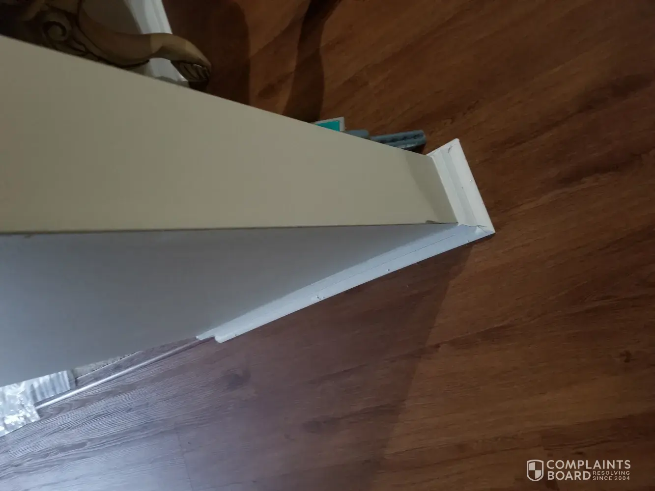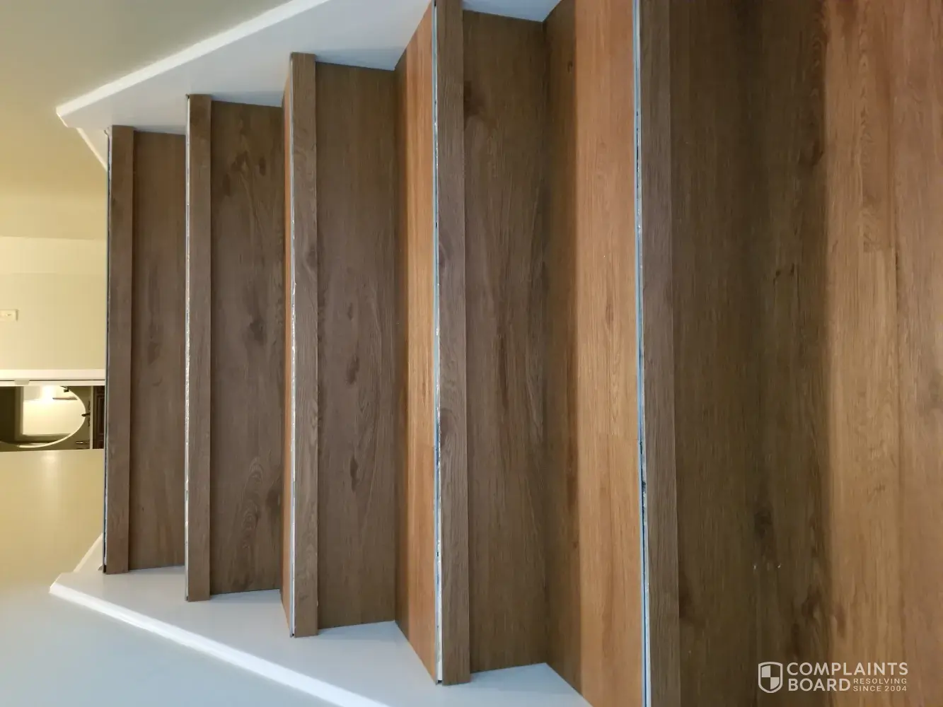 It was clear to me as the workers had to take the cupboard doors out to install the floor they did not fasten it correctly and now I am afraid to open any cupboard doors in case they fall out, too.