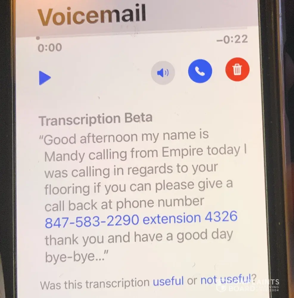 Friday, May 14th, I stayed home all day only to have a no call/no show from Empire. I called my Sales Rep and sent him a text. I think at this point he must have been sick of hearing from me so he didn't respond. Some guy Carlos called me at about 5 pm asking if the correct carpet was installed and I explained there was a no show/no call. He said he'd make a few calls and get "right back to me". He didn't.