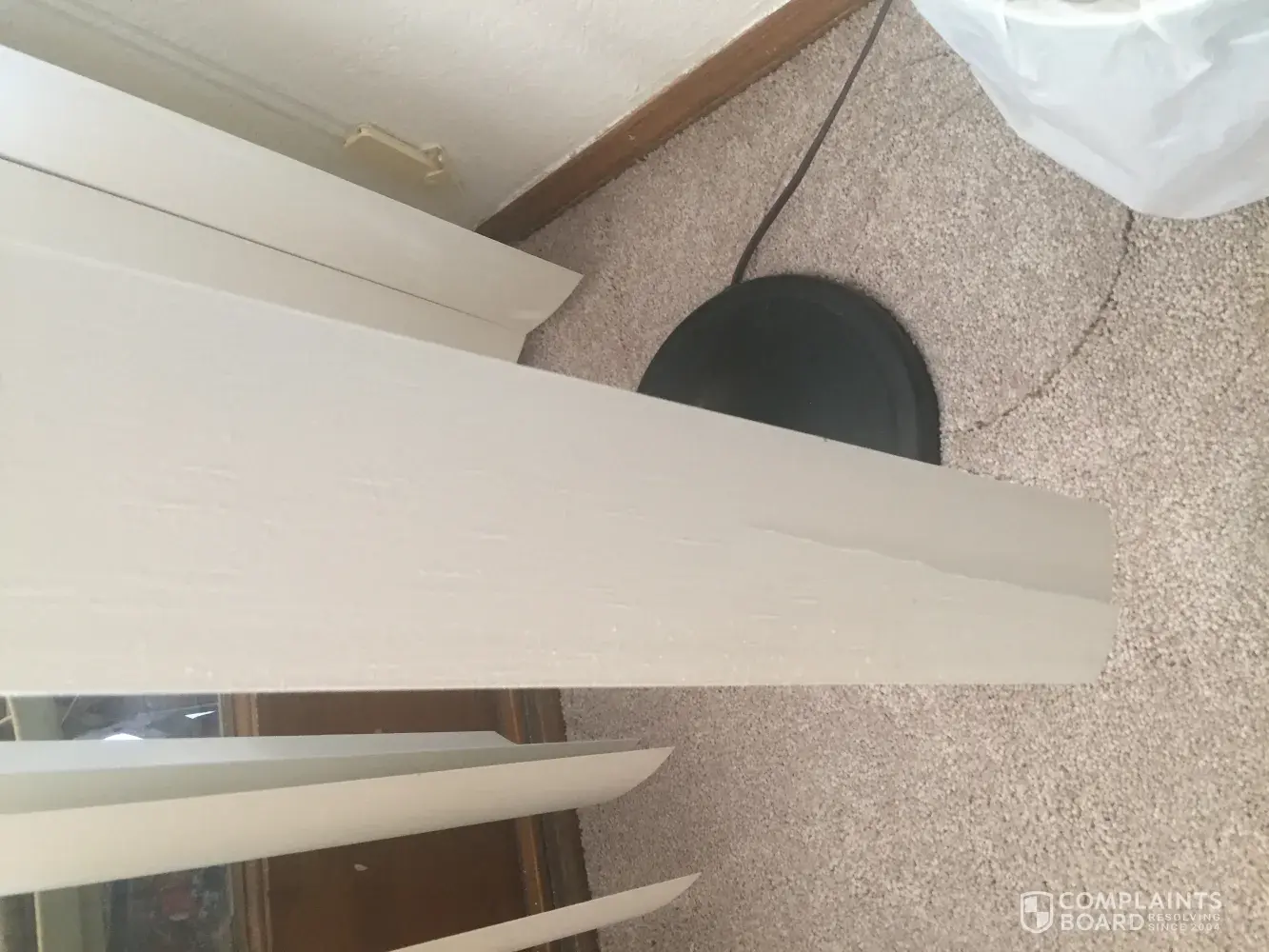 Desired outcome: Refund on baseboard, Correct carpet and discount