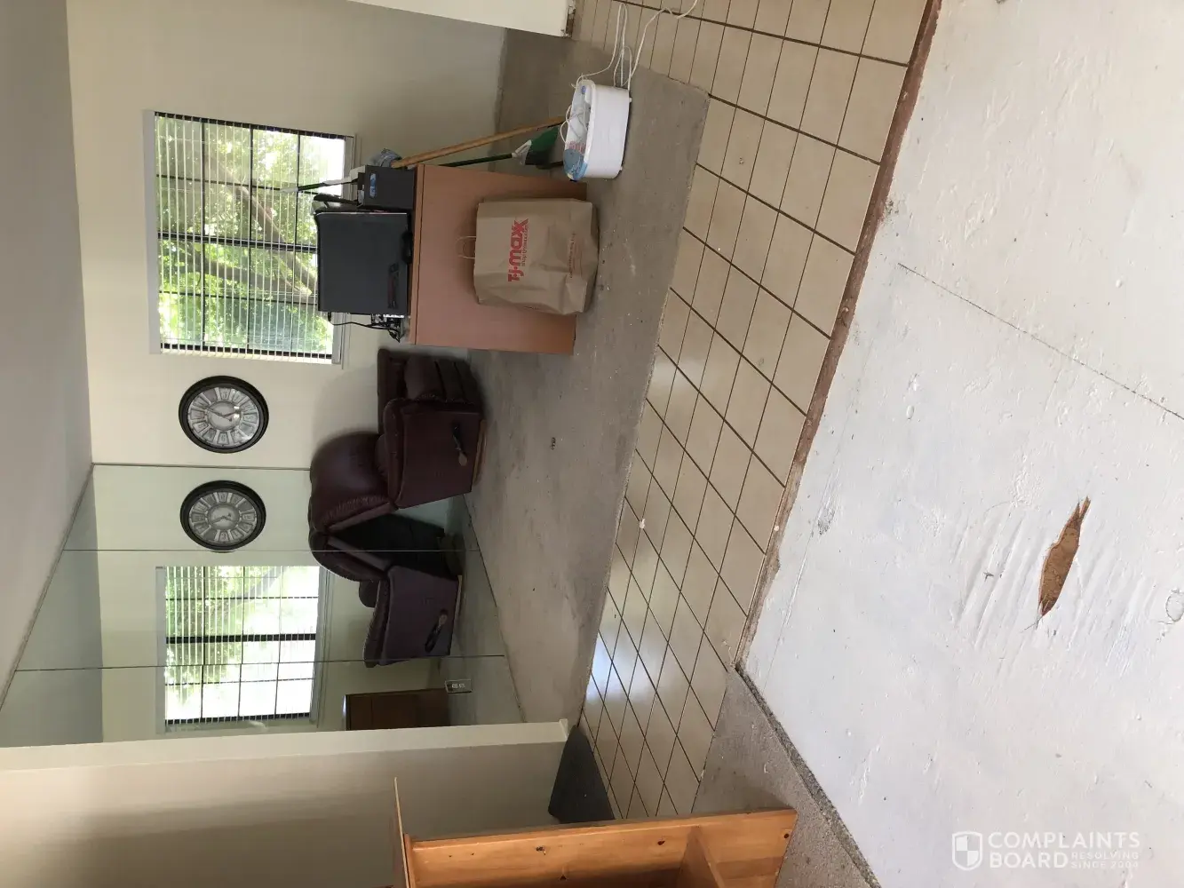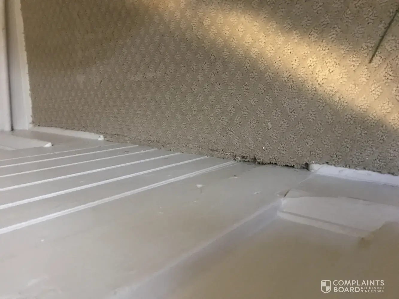 On May 25th, installers came out. I was in the process of replacing drywall because there had been a small leak. The carpet was dry and the drywall had been repaired. The installed proceeded to rip up the carpet in the bedroom and take it out of the apartment, leaving it outside on the walkway. When they concluded tearing up the bedroom, they said it might be better to let the drywall repair dry more because there was moisture in the air and it would be better for the flooring to wait a few days. They assured me they could be back later that week to finish as I was having family come into town.