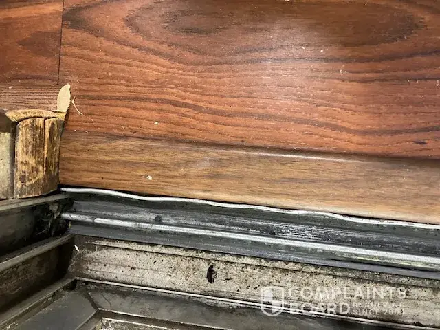 Work crew came out to installed Laminate flooring in my family room. They damages the rail on my sliding window door, My wife and I are both senior citizens, we both have arthritis in our hands and wrist.The door is very difficult to open after the damage.My wife can't open the door at all. Hopefully we don't have an emergency and need to excited threw the sliding door.