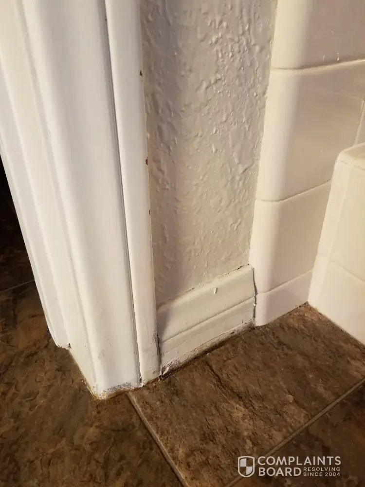 I had new vinyl installed in our bathroom Feb. 15, 2018. The installer, called "Lucy", did do a good job on the vinyl itself, but the baseboards are terrible. There are gaping holes along the edges and the areas behind the toilet and next to the tub are both sticking out and look like she just slapped it on. In addition, she made a huge mess with water and solvents and did not clean it up, leaving a stain on the floor outside the bathroom.