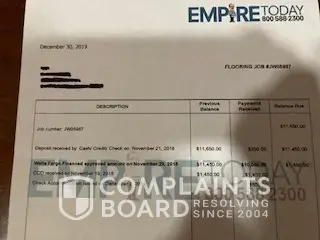 I ordered flooring for two rooms and was told it would cost $5896.00 however I didn't get the veterans discount and I didn't get the 50%, 50%, 50% the ad said. I called the sales manager and was told I did get the 50%,50%,50% he told me the original flooring for 460sf was $11000.00. I also sent a contract from Lowe's which was for $4647.37 and was told they would look into it but couldn't promise anything even though Empire says they would match any one's price. I sent three e-mails and they have not been read and were marked as spam. I would at least get the job for the Lowe's price. I would like corporate to look into this and either call me at [protected] or e-mail me at [protected]@yahoo.com. and on the meantime I will try to contact the sales manager by phone since he doesn't want to read my e-mails. Waiting to hear from you.
