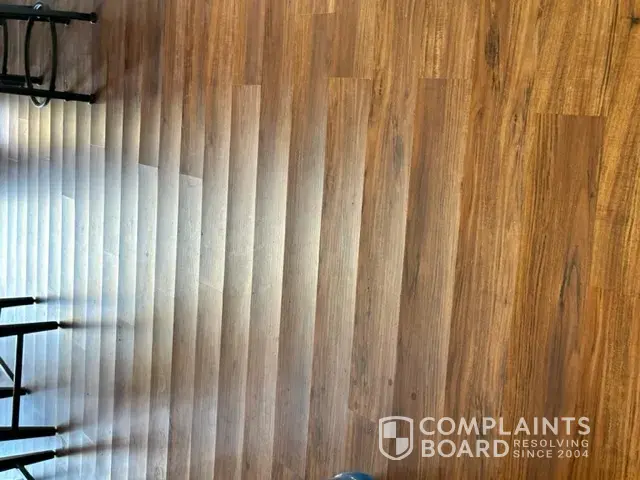 I paid them $10,000 for all new flooring. The floor began bowing up in areas within 6-8 months. I called and called them but they ignored me until the warranty expired and then they came out. They are saying water damage caused it in one room even though his moisture reading was 0.00 both times they measured it. In another room they said it was my roller office chair that caused the bowing up but I do not own a roller chair. The quarter oh d does not even line up and they said walking by it will cause that. They will steal your money and lie about it. Read all of the reviews and you will find that my experience is the norm.