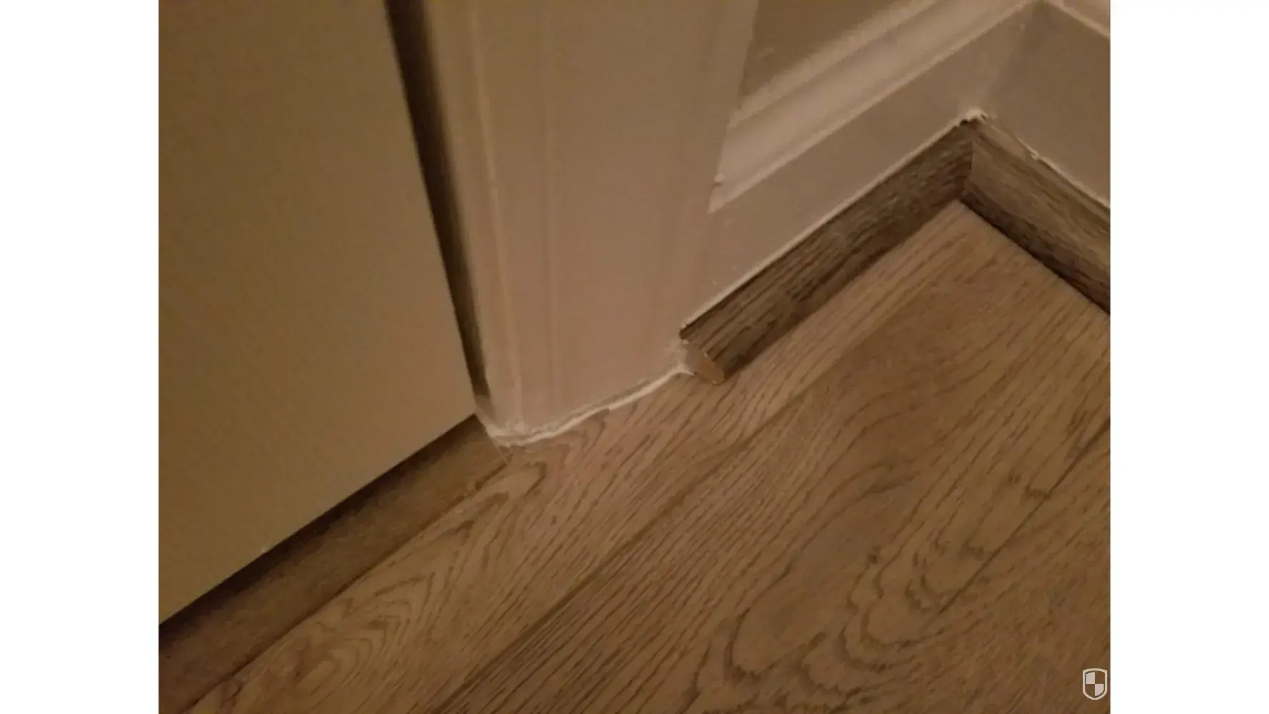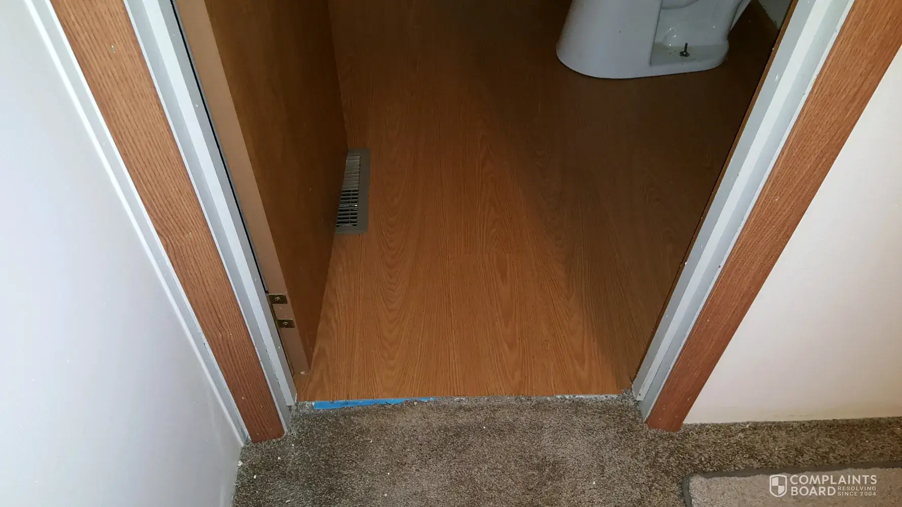 Flooring was not completed. Trim was left off and blue padding is showing all over the place.