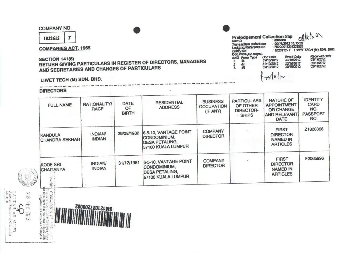 TO WHOM SO EVER IT MAY CONCERN. Respected Sir, I’m one of those victims of human trafficking & Job assured & cheated by a small company named Liwet Tech (M) Sdn. Bhd., Company No: 1022612 - T, 10-3-1, Jalan Jalil Perkasa 15, Aked Esplanad, Bukit Jalil, 57000 Kuala Lumpur, Tel: +603-[protected], Fax: +603-[protected]. Name of the company is registered on...