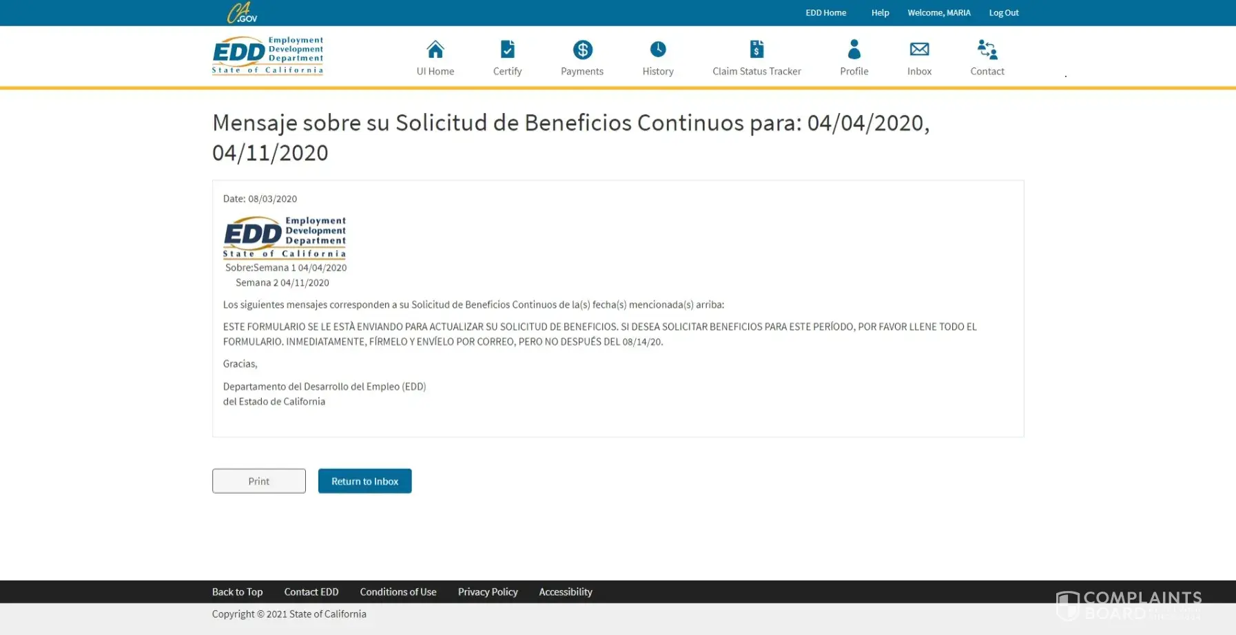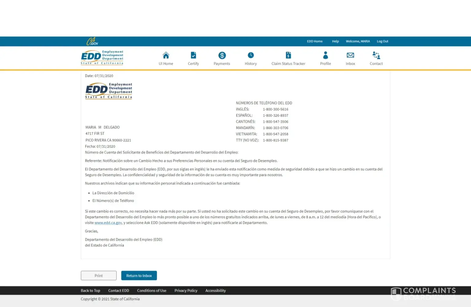 Have received two notices requiring documents verifying Pandemic benefits. Sent documents by mail twice to edd Legal and edd ui, have received no answer. I'am unable to download documents there are to many too download. Unable to reach edd by phone or email.