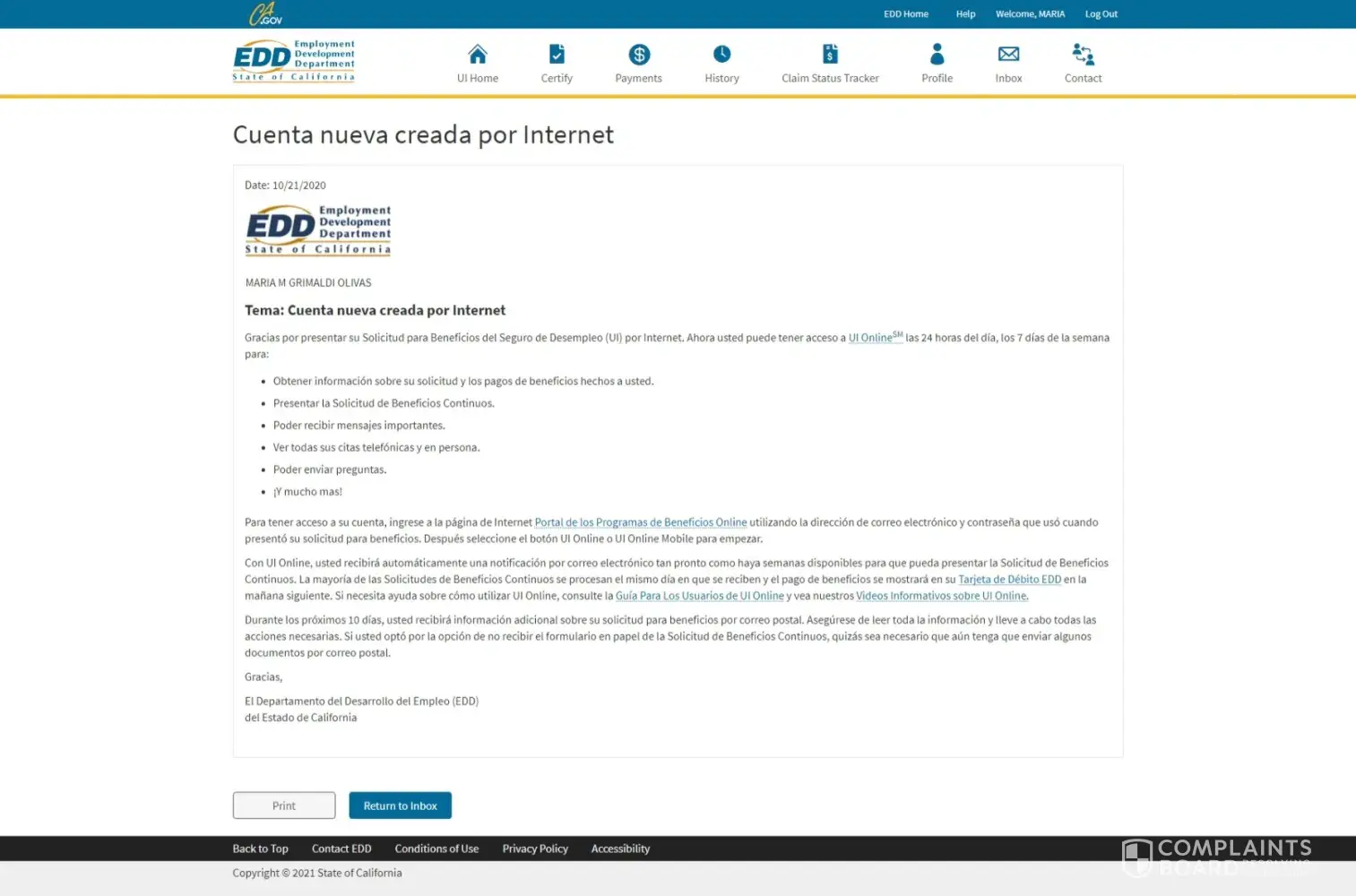 02/13/2020 yo me submiti para agarrar beneficios de desempleo in febrero de 2020. el departamento de desmpleo me mandaban mensajes que mi informacion no era la misma que ellos tenian en sus archivos. recibi una carta que me aprovaron en agosto 2020 pero la informacion tenia un numero de seguro social que no me pertenicia. you submiti todos los datos has fotos de me liscencias y seguro social. en noviember 2020 recibi mensajes de el departamento de desempleo que arreglaron mi informacion y que tenia semanas para certificar pendientes desde febrero 2020. you les hable y me colgaron 4 veces cuando me contestaron ya despues de esperar horas en el telefono. les mande correos electronicos. nunca me arreglaron el problema. you recibi dos tarjetas del banco de america porque la primera era para el caso que estaba equivocado y el segundo por el que era con mi identididad. cuando hable con una receptionista me insulto disiendo que yo no se como explicarme y que estaba inventando nomas para agarrar dinero. y me colgo. submiti formas para una apelación y nunca me respondieron. yo batalle mucho desde que empeso la pademia. perdi a mi esposo en diciembre 24, 2020 contra covid 19 y tuve que cuidar a mi familia porque todos nos infectamos de covid 19. todavia no me resolvieron el problema. fui insultada me trataron muy mal y nadie me ayodo.