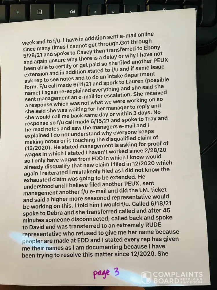 After many unsuccessful attempts at trying to reach a human being at EDD,
