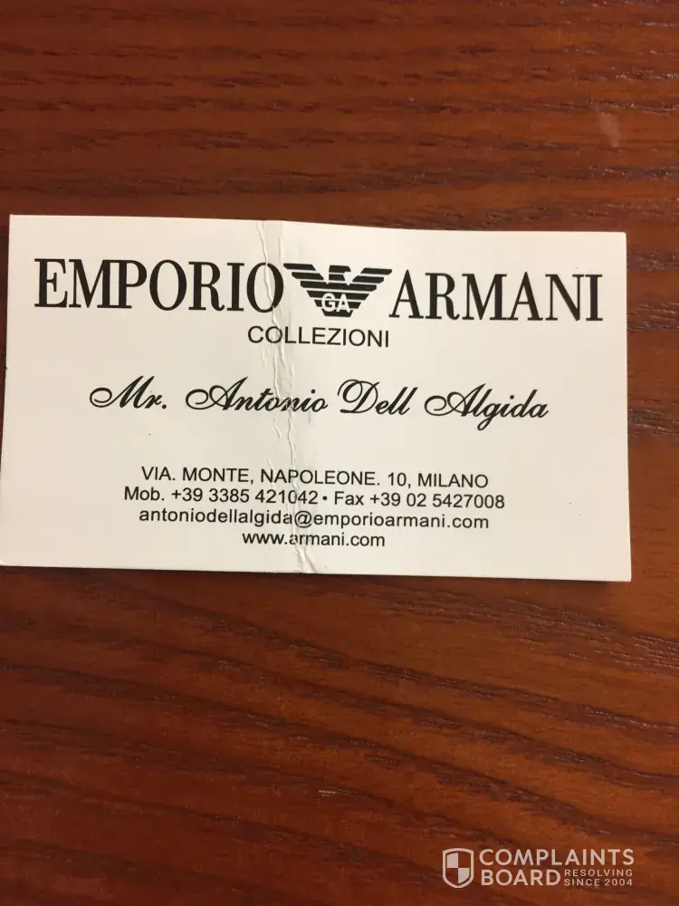He seems to be calling himself Tony Dell Avallone. His email is very un-Armani tonydellavalone@hotmail.com I am sure a Director of Armani would have a company email wouldn't you!
