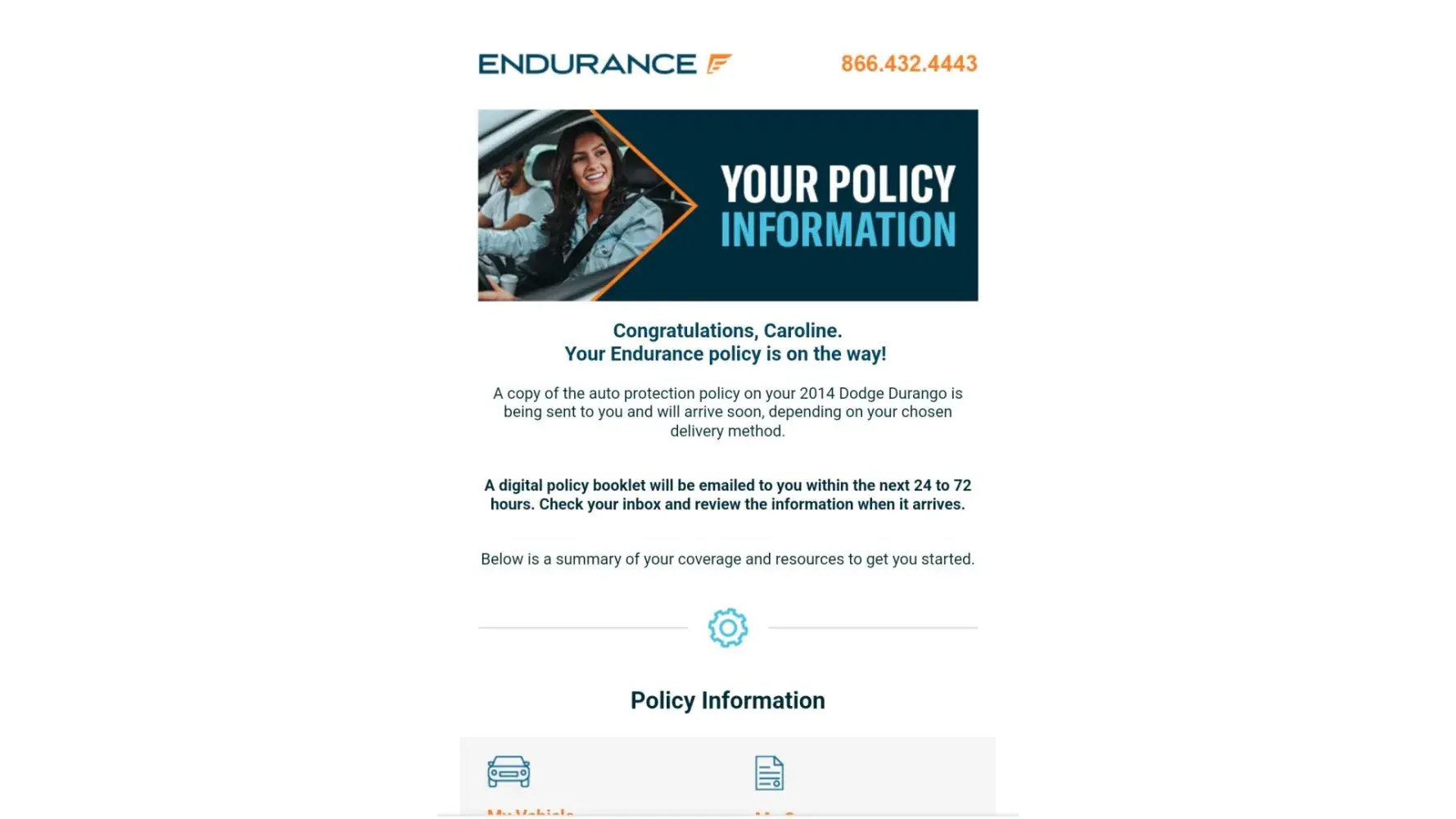 So, I called Endurance to inform that I was going to need to have mechanical work done with my Secure Plus plan. They told me to take the car to a mechanic and present them with the policy.
