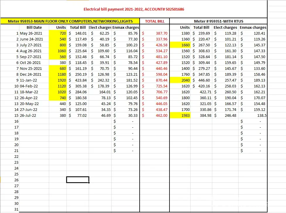I was just sent a bill from Enmax stating that I have use 1076 kWH for this past month. Never in the 8 years I’ve own my house have we ever used that much. We usually are in the 475-590 range, with the odd high bill (maybe once a year) being in the 600’s.