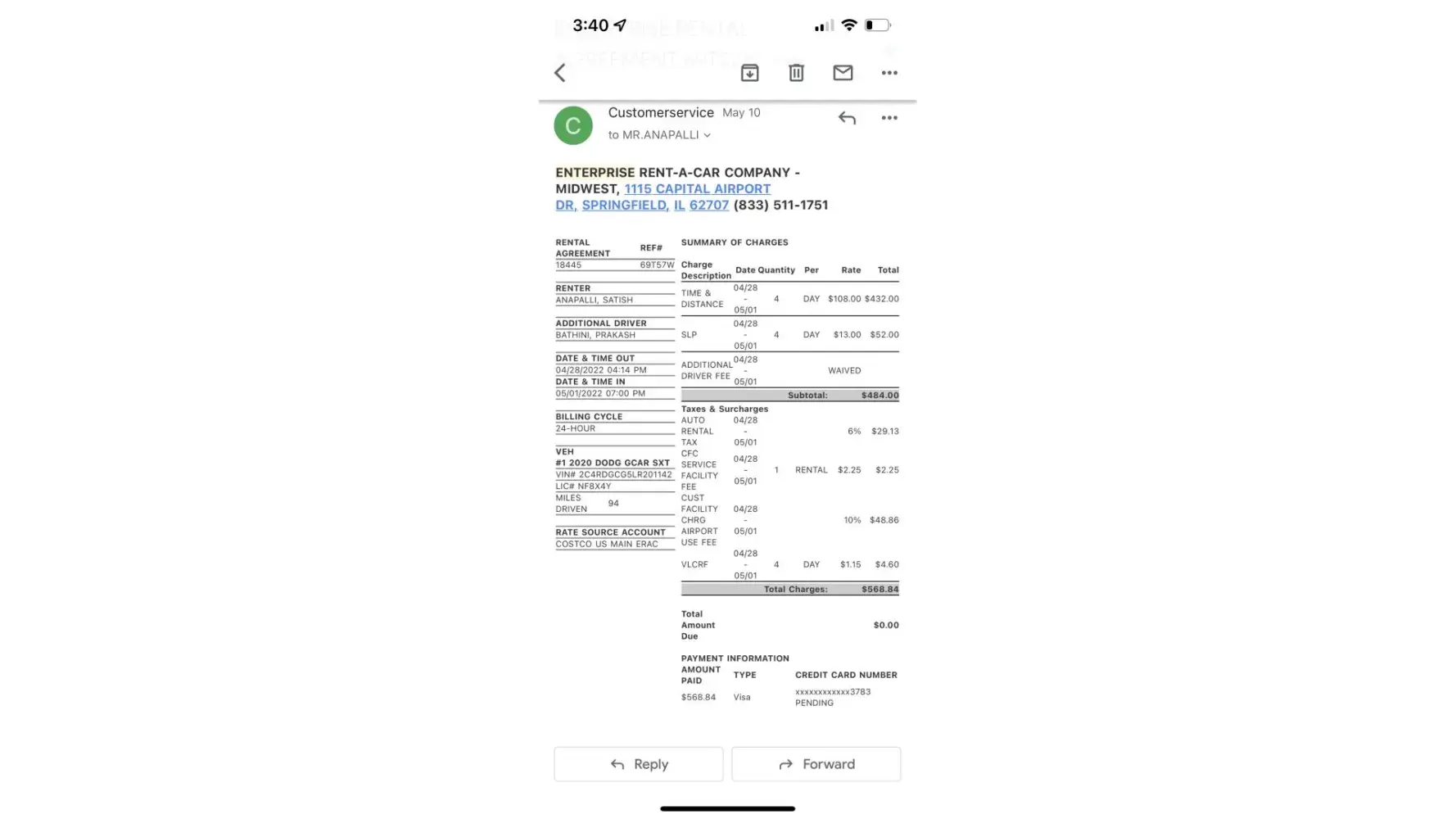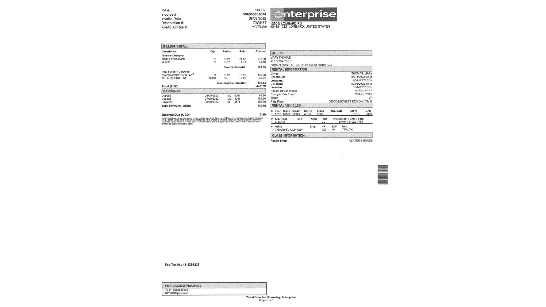 Enterprise Rent-A-Car - Rental overcharged