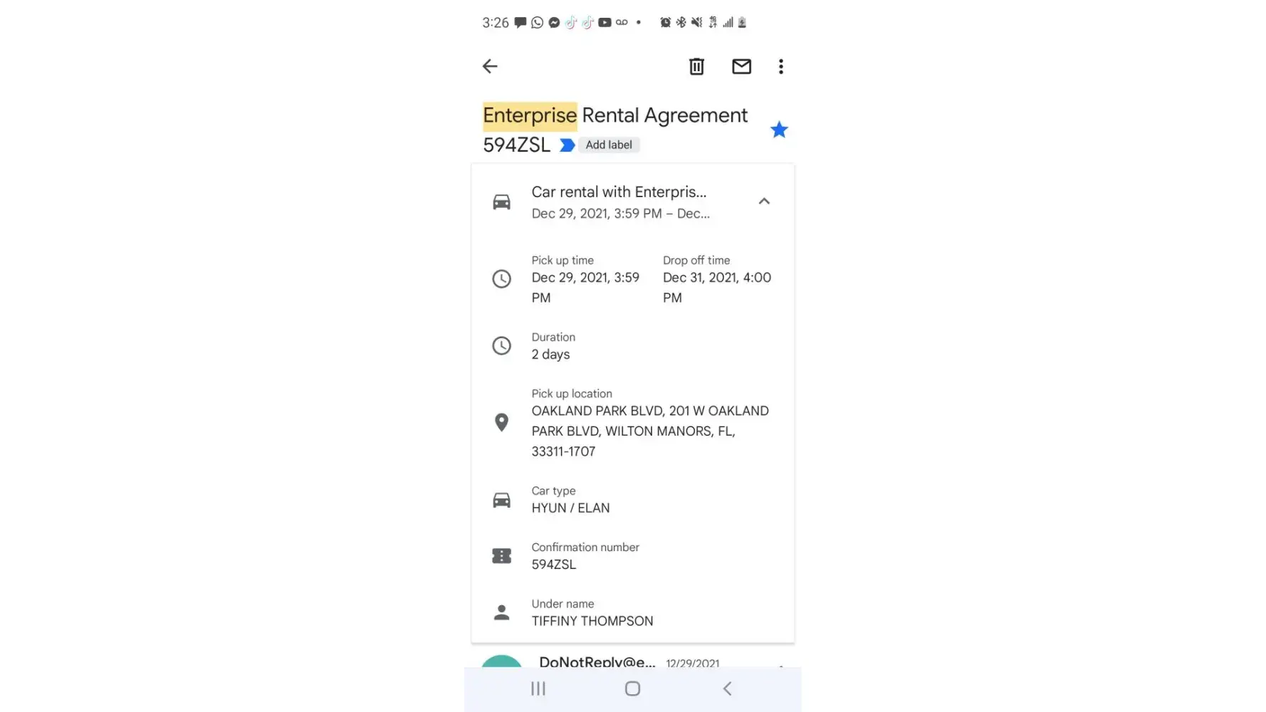 Confirmation Number or Rental Agreement Number: [protected]