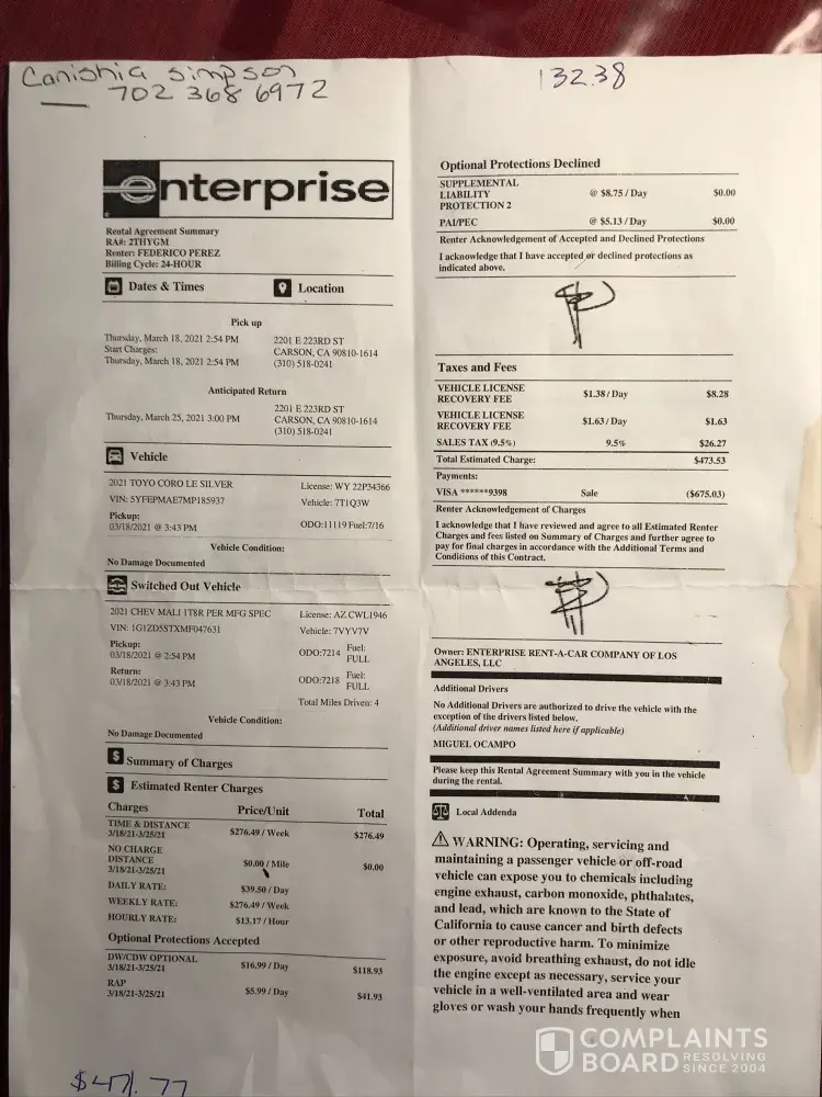 It's a shame in my honest opinion that Enterprise has gotten to the point that they don't care about customer service anymore.