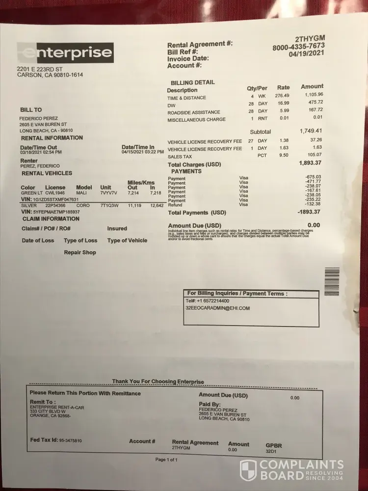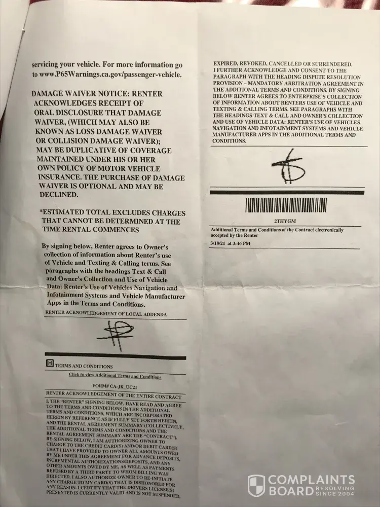Read full complaintCar rental