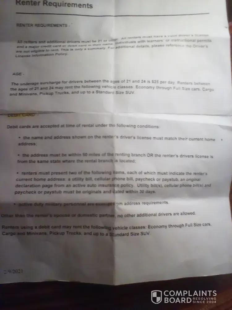 They need to make this right, someone has done something fraudulent on the paper work on the car I rented. They need to find the person that actually rented that car and contact them. The miles driven was incorrect on my web receipts, everything seems to be off.
