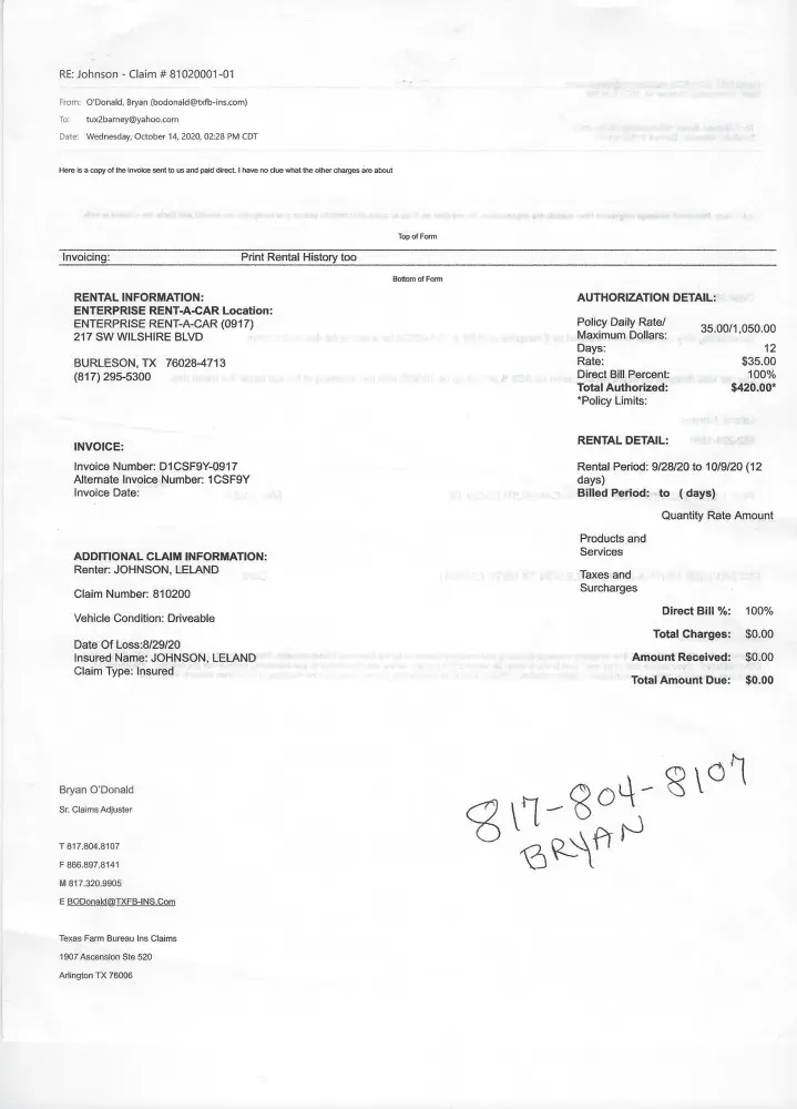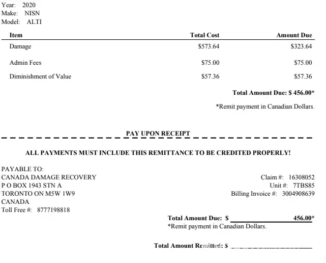 I called the Damage Recovery Unit, and after being on hold for over 10 minutes, spoke with a team member who then transferred me to the Customer Care department. I spoke with Shyleine (I apologize for mis-spelling her name). I explained the situation and that this was a damage on my rental agreement.