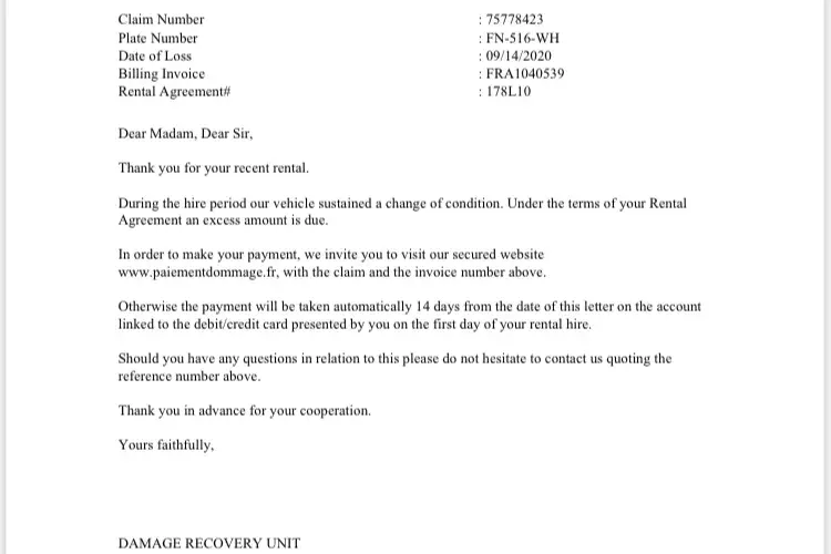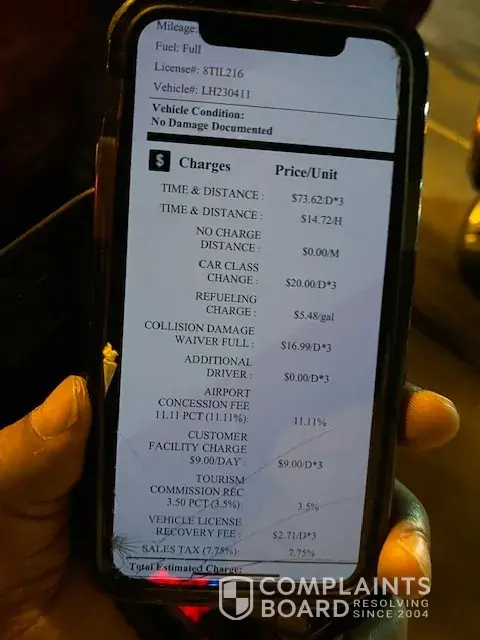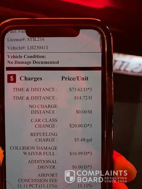 Read full complaintCar rental - charged damages