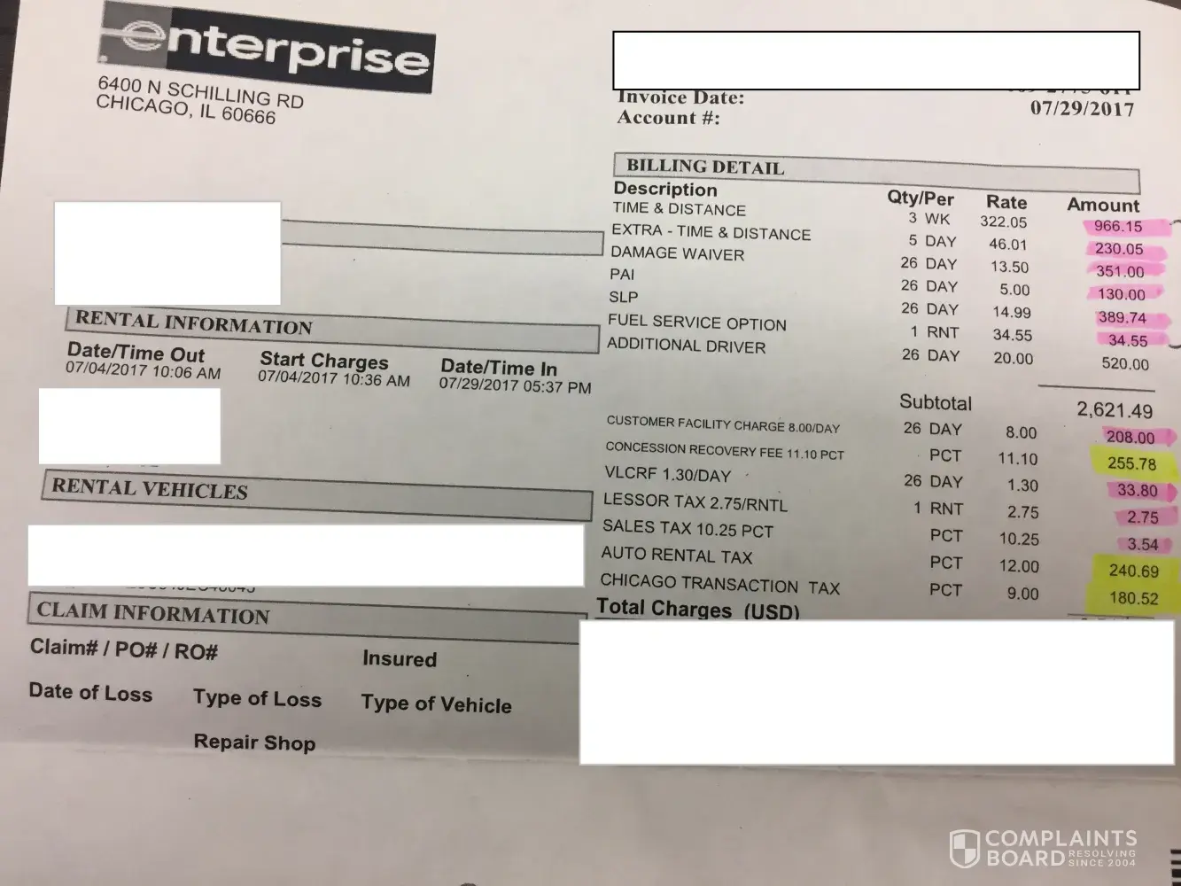 This issue with Enterprise Rent a Car took up most of our visit with our daughter, we missed reserved dinners, we lost money on a luau we were unable to attend. We took this issue no further than my calls to customer service.