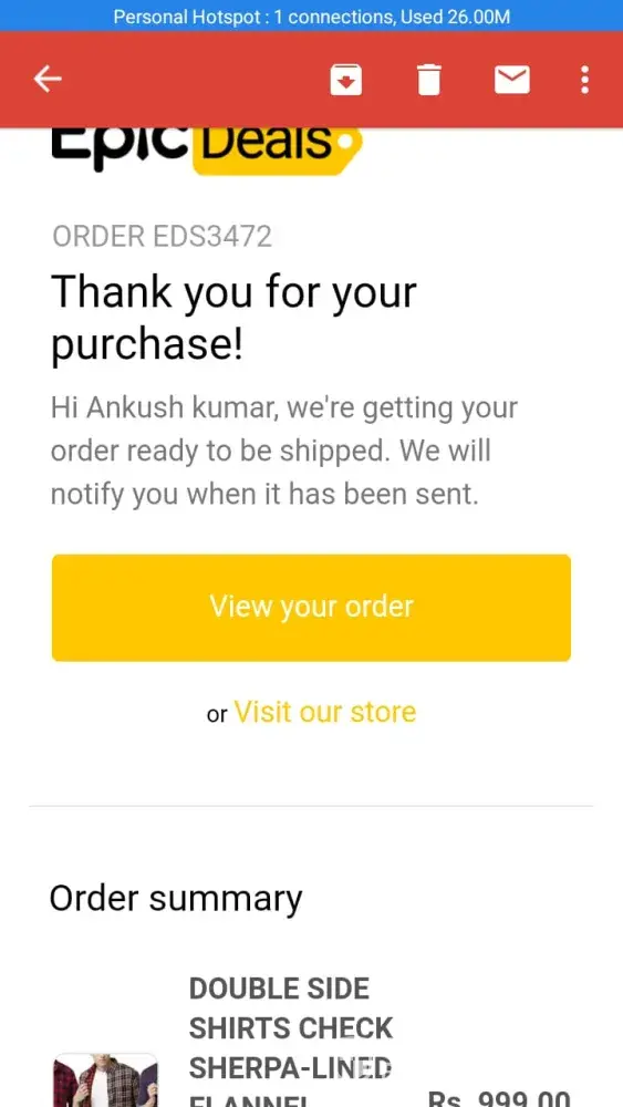 I have ordered shirts from Epic deal order no. EDS10106. When I received it today I was very disappointed with my purchase because the quality of the shirt is very poor and it is not properly stitched and the colour is not as in the advertisement. So I want to return it. Please kindly make the necessary steps to return my money ₹999/-.