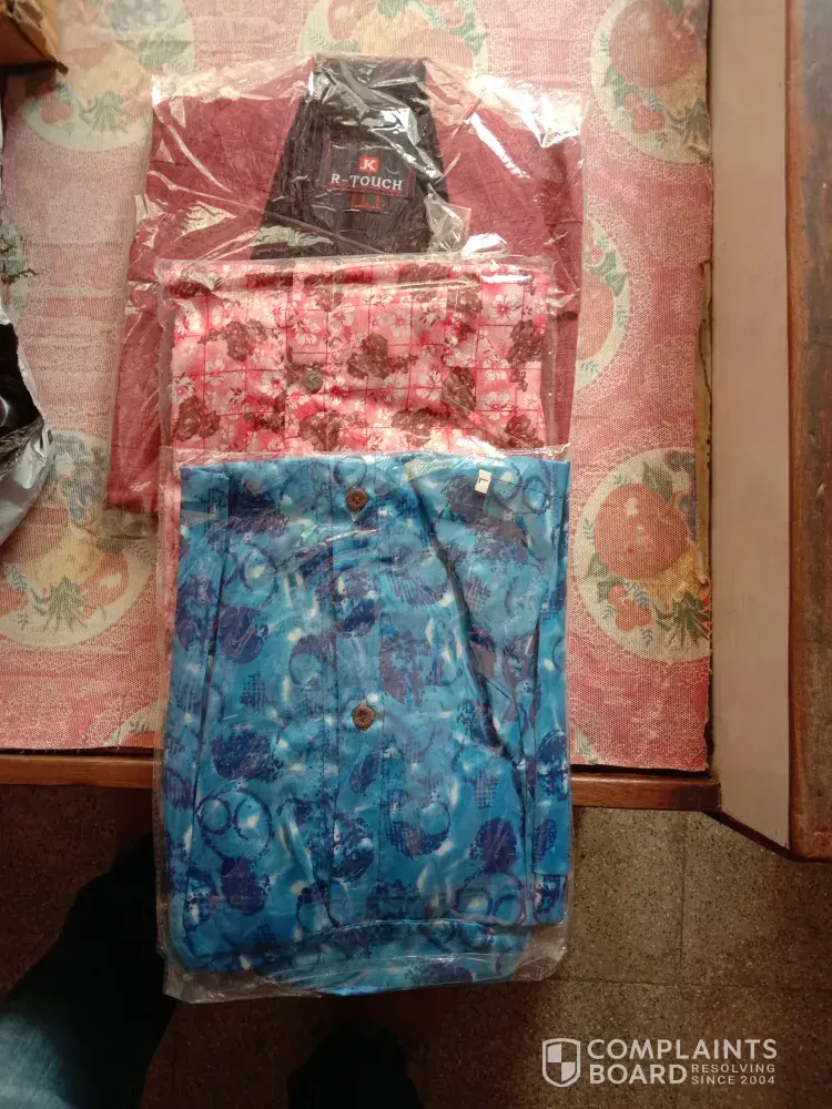 But when packet open I found 3 different type of shirt which showing to used shirt.