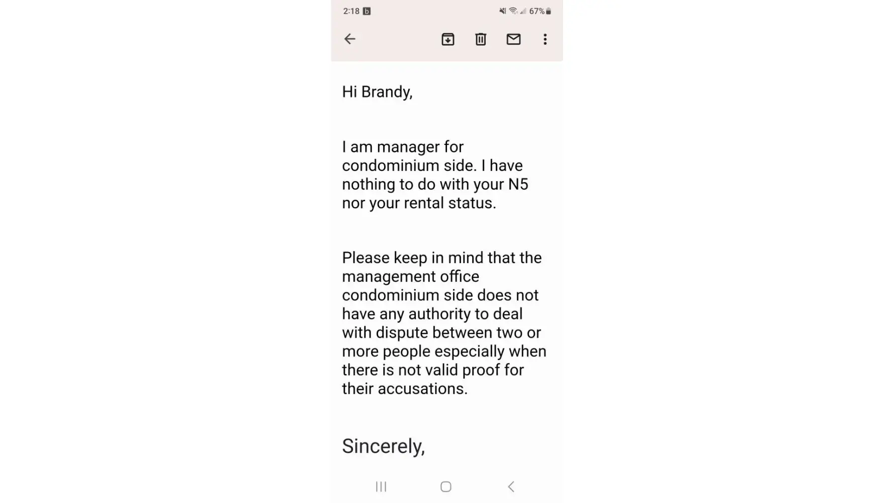 Omg this is what deal with because of EQB equity bluiders management and on site manger Jeff Cook told them July 18th that water was coming from roof that's a year old see that's what you get what pay for they had different roofing company come in on Friday patch the big gapping hole all I can say is not very good management running this condos in welland and this not on owner because we think he doesn't even know what's been going with his unit all water damage this company has let happened That's management it on them give us N5s without filed with LTB broad let manger Jeff Cook harass me swear at me and call me a puke watch me on his cameras walk on the sidewalks or even in drive way and then calling the police x3 on me saying im opening his doors let his dogs out and moving his cameras not true all im so stressed from all of this Jeff Cook trying get us kickout and to go as low and say my service Dog bite him spca said Boston didn't bite jeff Cook at all and EQB management said to us prove that he is harass you I just wanted to share my story pls share beware of this company
