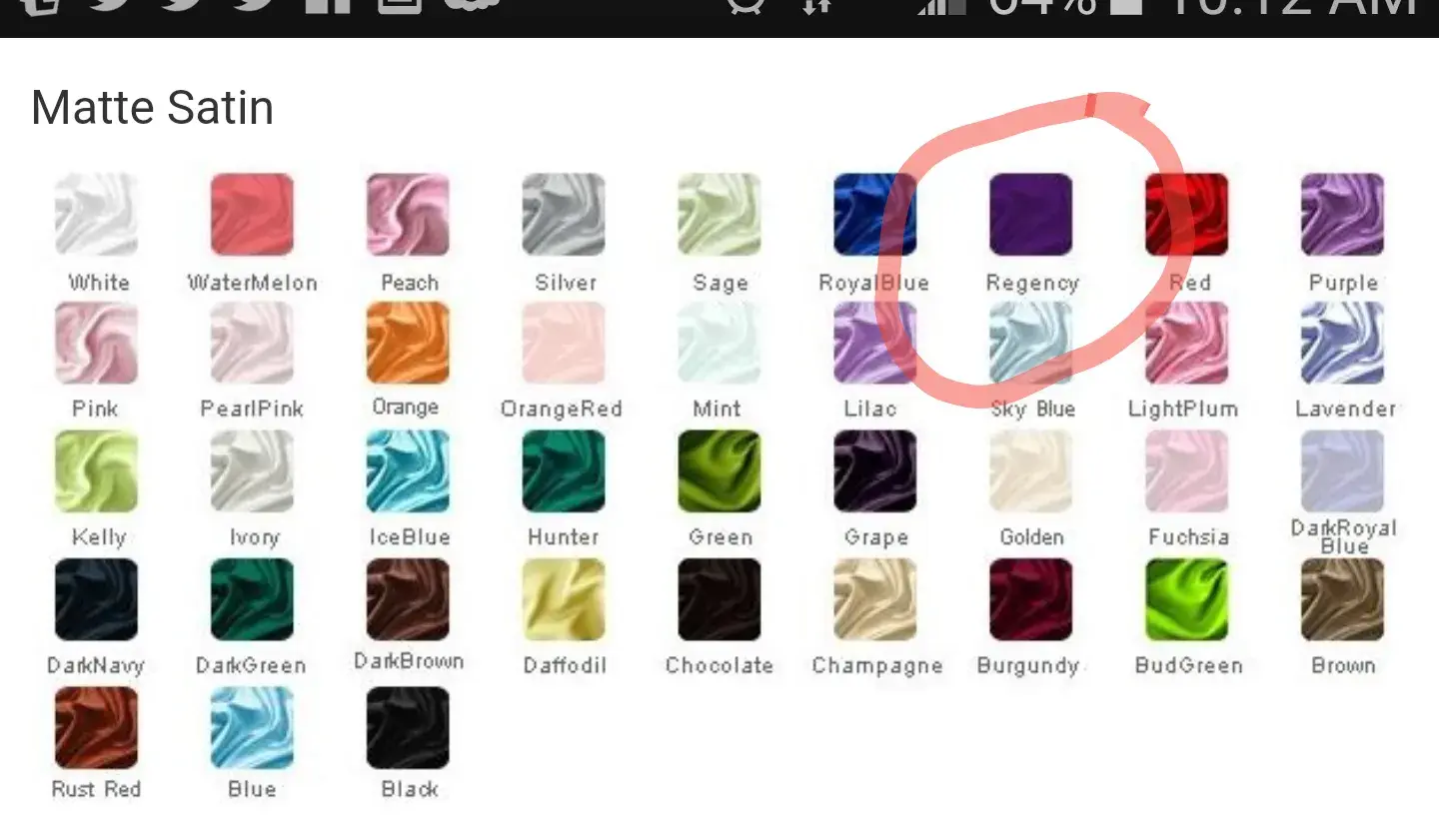 As a repeat, very happy customer, I wrote to Ericdress before placing my daughter's prom dress order to ask about which material is used in this dress so we could order the correct color (we wanted dark purple). The dress description only mentions "tulle, " which is obviously the top layer of the skirt and a material for which there is no color grid. The written reply I got was that I should use the Matte Satin color grid. So we did so when placing our order on 3/8.