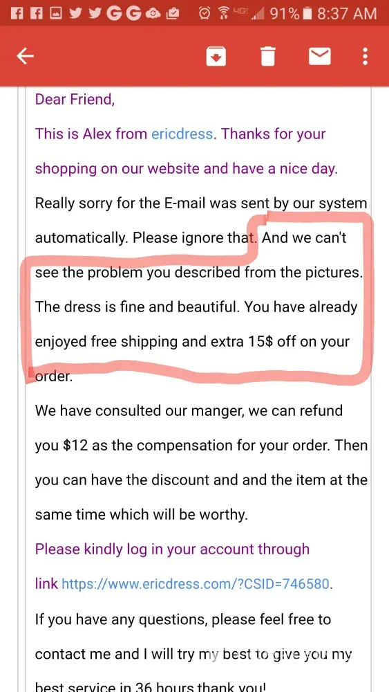 So, if you'd like to find yourself out of pocket, involved in an endless and repetitive email conversation, and wondering why you ever bothered in the first place, then I suggest you order from Ericdress.
