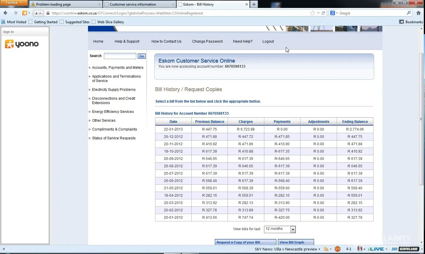 This original billing amount is R2774.06. The estimations was calculated from 17/04/2012 to 17/01/2013.