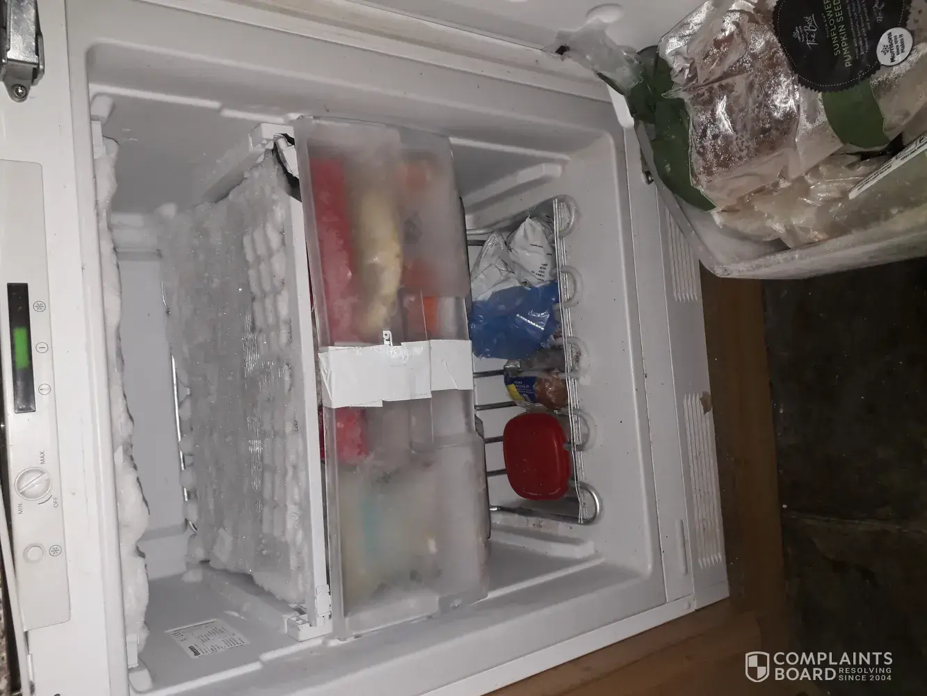 After describing the integrated freezer several times to vicki courney, I sent an email with two photos I said "I hope this settles the matter". I got a reply that had a picture of a glass shelf for a fridge, with caption say"buy now" I assume that this was their way of saying [censored] off.
