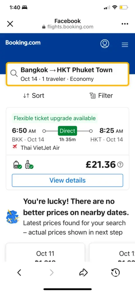 Please be careful when booking flights via Booking.com – always screenshot your fare!