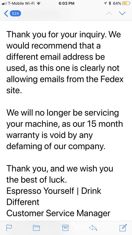 Espresso Yourself / Jura Parts complaints: history and resolution overview