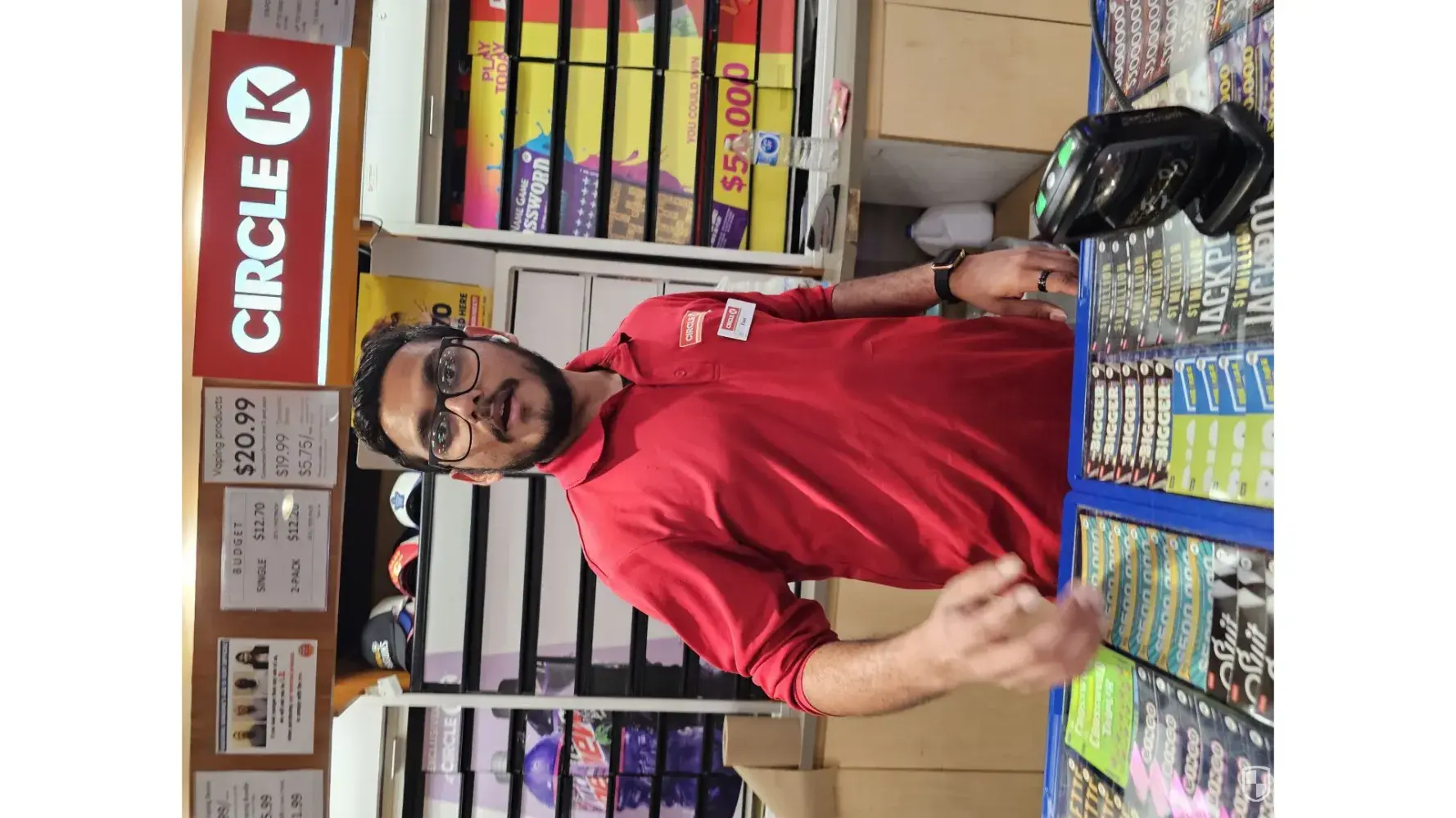 Went in to purchase $60 regular fuel $11 lotto max and $13 lotto 649 first. As my husband was outside waiting to fuel truck. Did that. Went next to check chips aisle out. Noticed worker staring at me and visibly moving so he could see what I was doing.