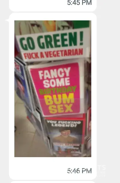 He felt each to his own. Not acceptable! Worst ever seen in any public place. Because there are two restaurants in the same area children have access to these if they go from the tim's to dairy queen, it is also degrading to woman.