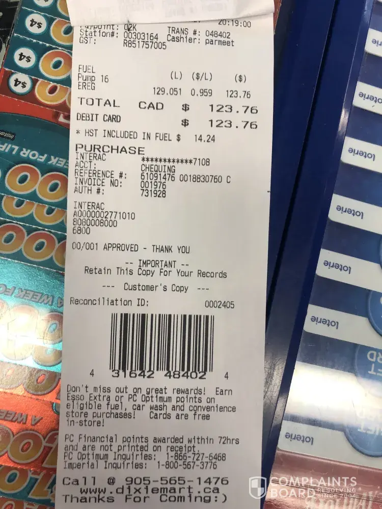 Hi, I am an employee at the above mentioned gas station. My employer made me pay 124.76 dollars for the mistake of a customer in which I have nothing much to do about in that. The customer pumped diesel at pump# 13 and came to me telling that he pumped diesel at pump# 11 and I asked him 3 times that is he sure about the pump and he said yes. So I charged...