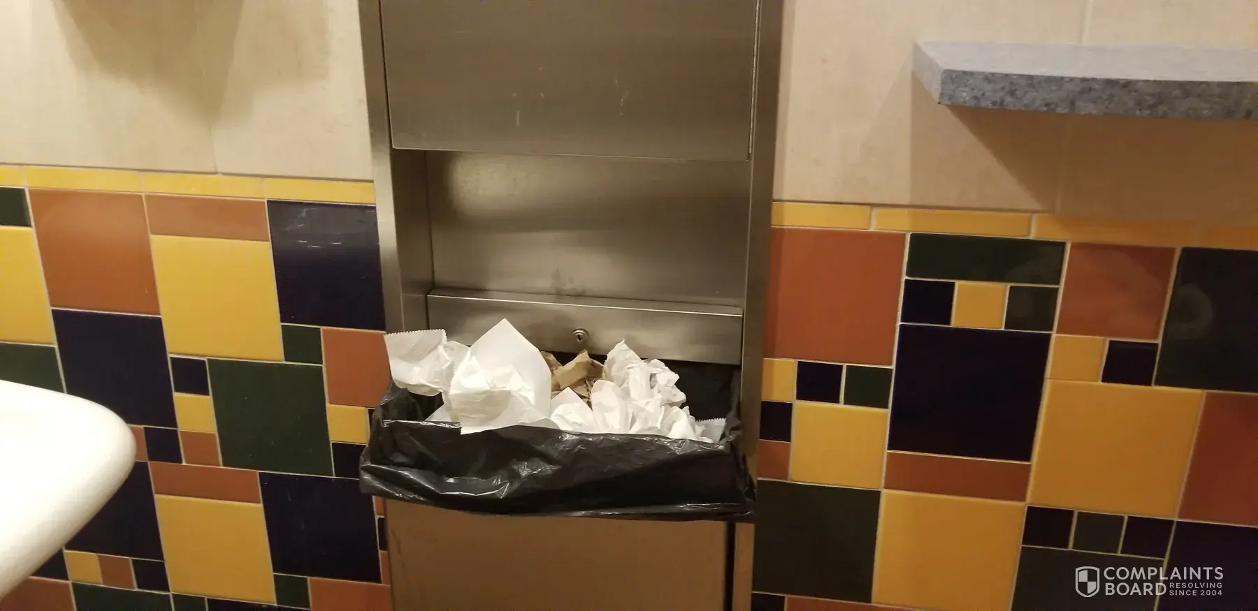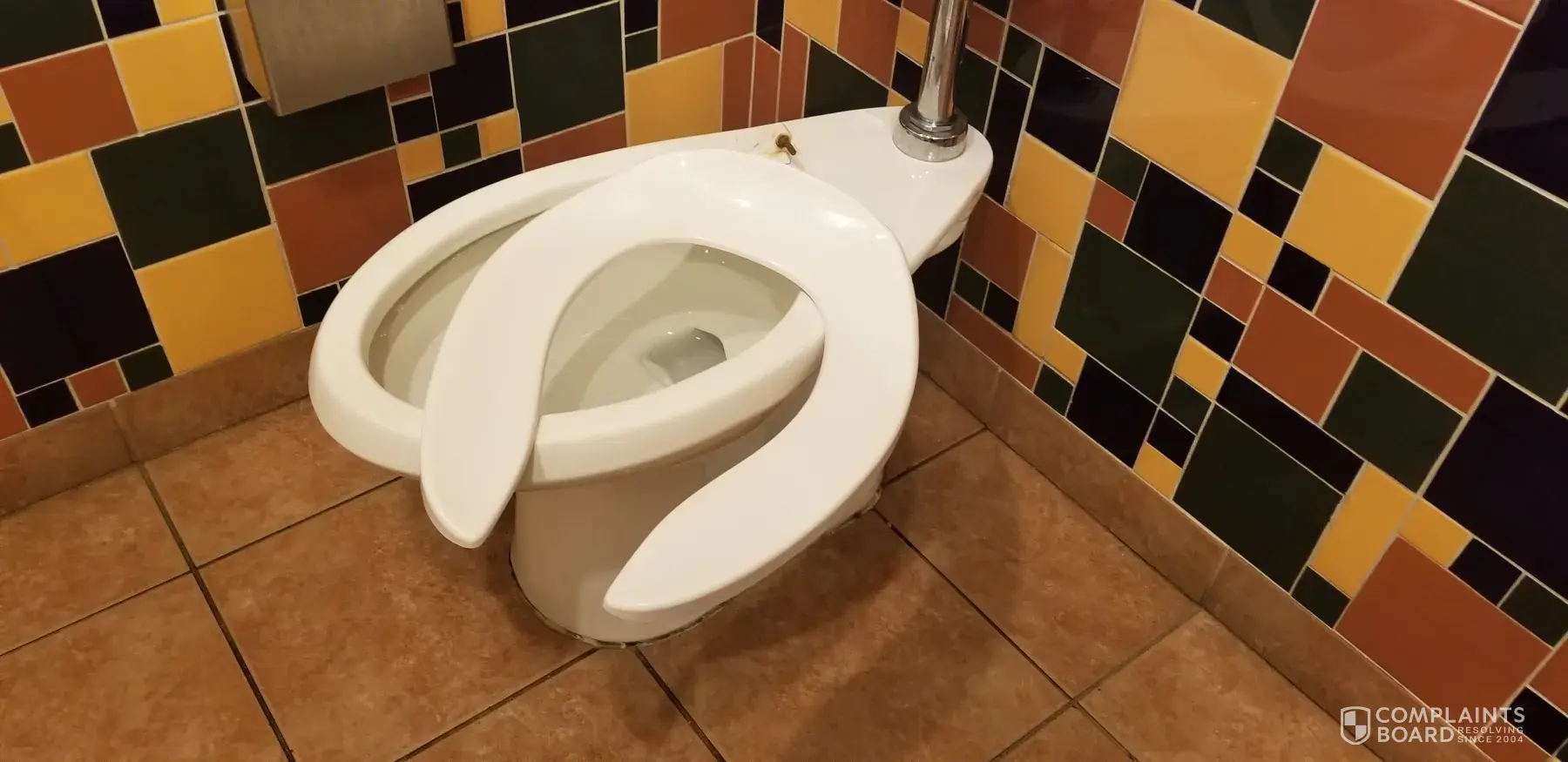 Proprietor has been told for last several years about the washrooms and has done nothing. Toilet seat always loose swings from side to side even when they tighten. Since last week seat completely broke and not fixed. Most times out of toilet paper and or paper towels. Toilet do not flush properly and are always backing up. Seats are very dangerous if it were someone handicapped. These pics taken at 7:30 am
