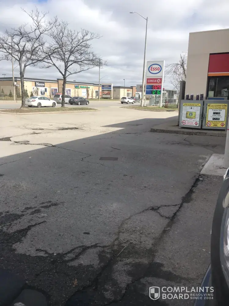 Gassed up at 7995 Kennedy Rd, Brampton on March 25th 2019. Pot holes are almost a foot deep. It is time to re asphalt this entire lot. It is in very poor condition. This is in a prime location with a lot of public traffic. I'm sure it would make your customers very happy to have a resurfacing job done here! I am not going back to refuel here if it its going to cost me a front end repair job. Not going back until this is fixed.