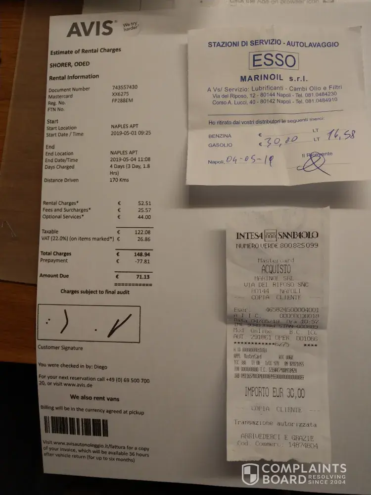 I refueled my from Avis rented car, Fiat 500, at your station in Via del Riposo 12.