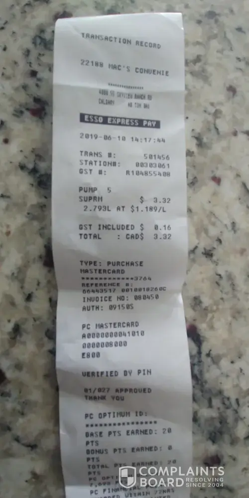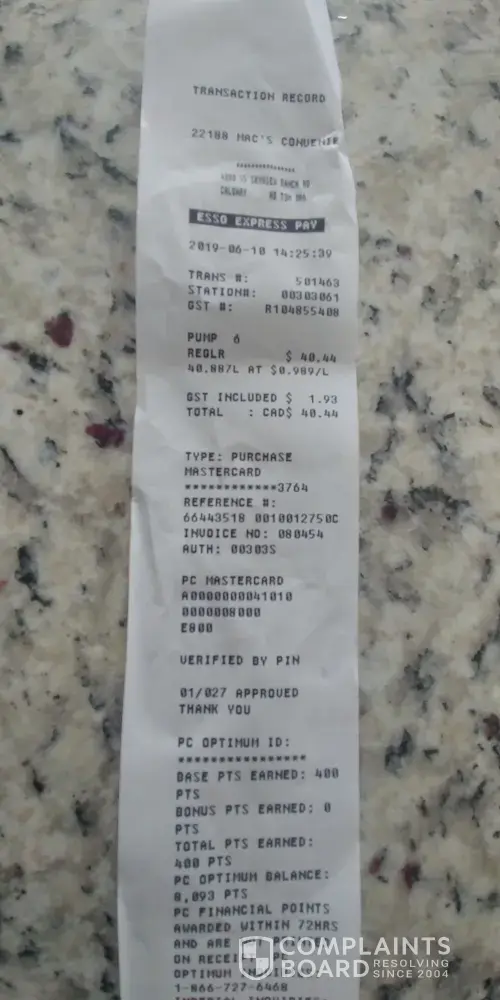 So I stop for gas at esso gas station location airport and queen bramton Ontario Canada.