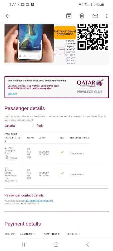 - Our flight tickets with Qatar Airways on Aug 28th / 29th